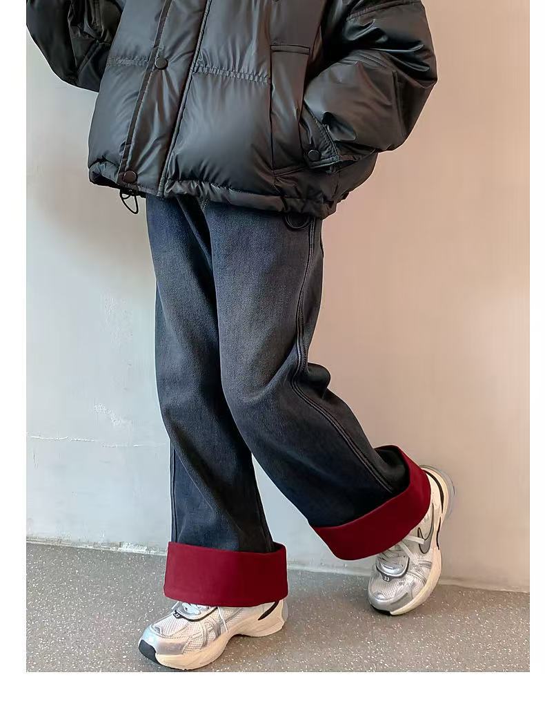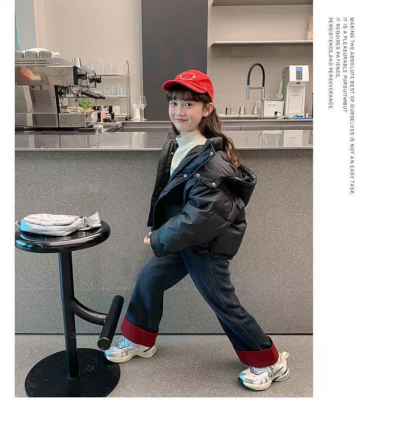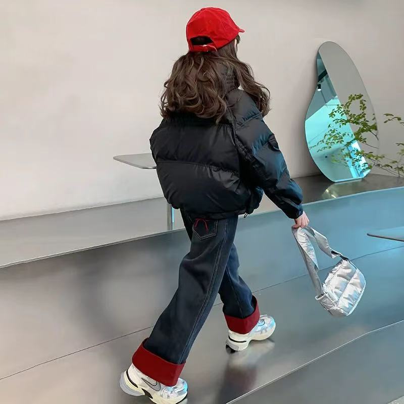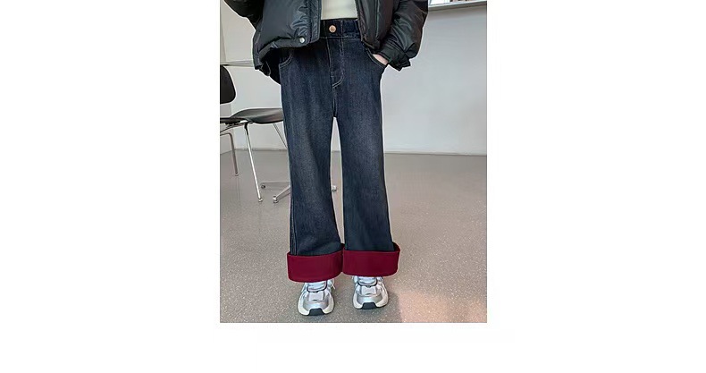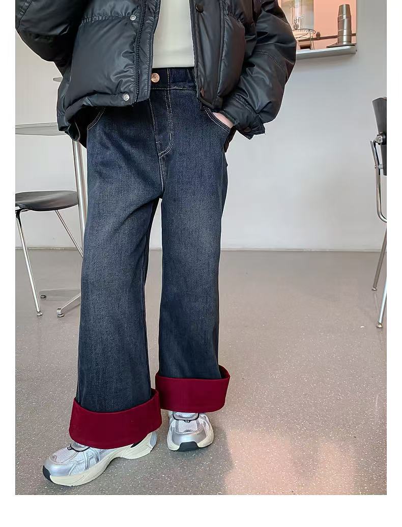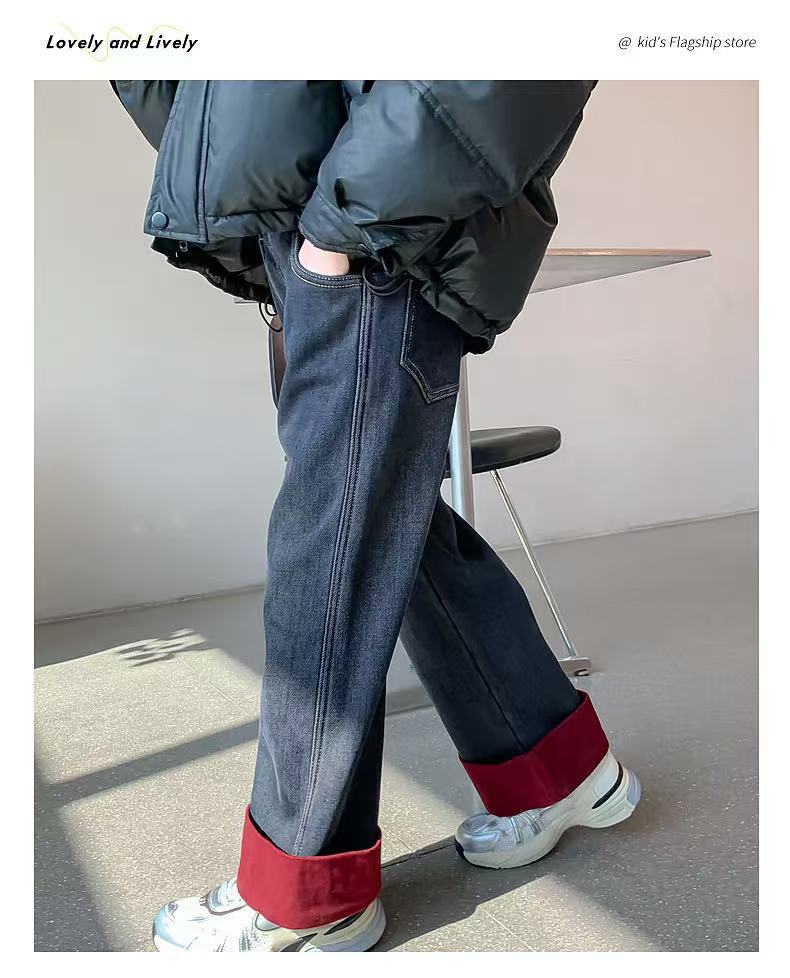 여자 겨울 착용 기모 바지 2024 새로운 어린이 가을 겨울 청바지 두꺼운 어린 소녀의 겨울 캐주얼 바지