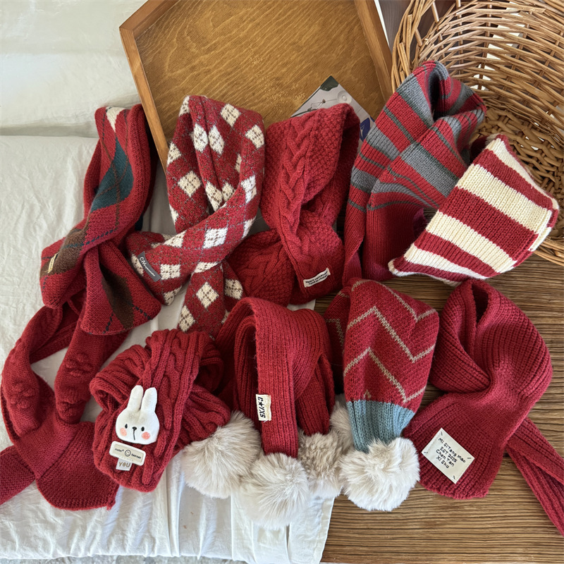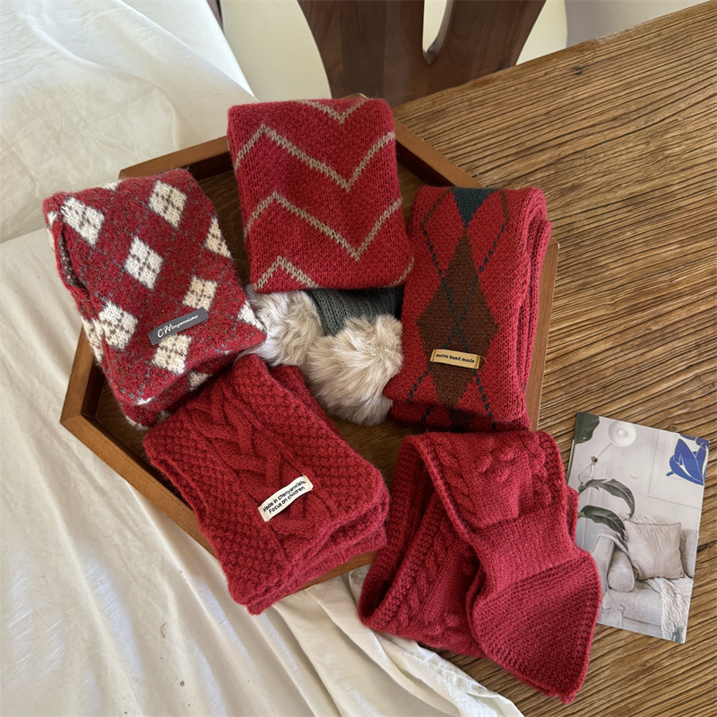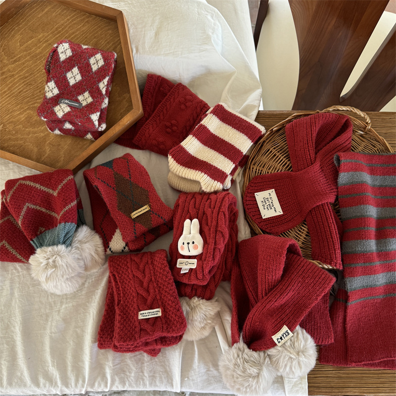 새해 빨간 아기 스카프 겨울 새해 서양식 니트 따뜻한 어린이 축제 남녀 크리스마스 스카프 착용스토어 가기