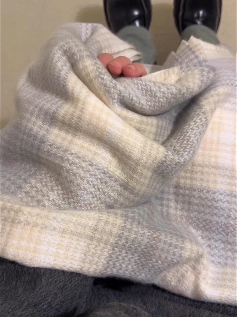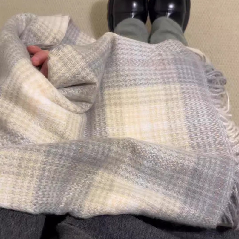 회색 격자 무늬 스카프 겨울 여성의 한국식 분위기 스카프 목도리 외부 목 보호 냉방성 고급 2024 새로운스토어 가기