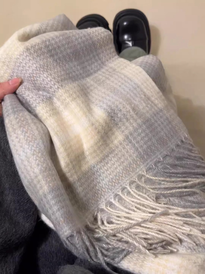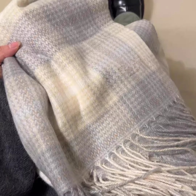 회색 격자 무늬 스카프 겨울 여성의 한국식 분위기 스카프 목도리 외부 목 보호 냉방성 고급 2024 새로운