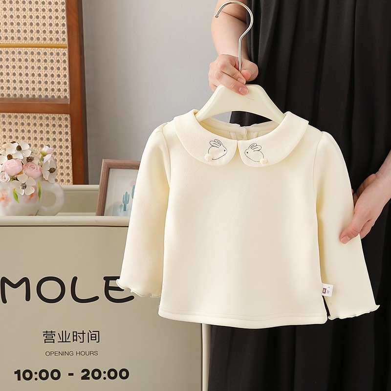 여자 바지 셔츠 기모 서양식 2024 가을과 겨울 새로운 여성 아기 벨벳 옷깃 긴 소매 티셔츠 조커 3 세스토어 가기