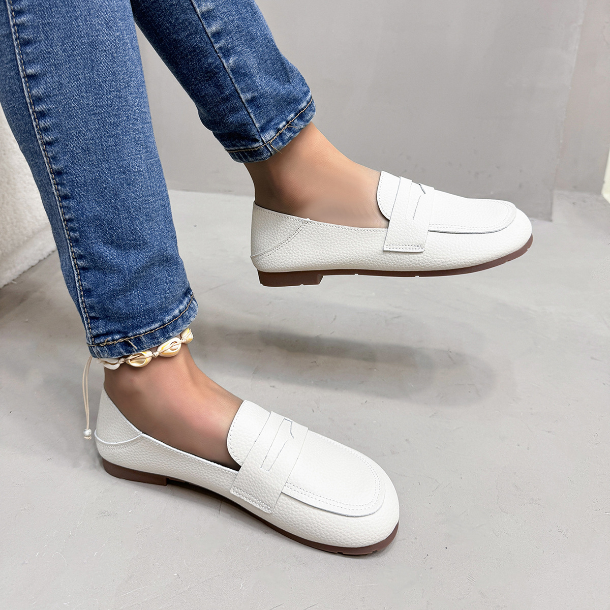 2024 봄 · 가을 신형 투웨어 편평한 저가발 작은 가죽 신발 여성 한국식 편안한 라운드 발가락 대외 무역 게으른 콩 여성용 신발스토어 가기