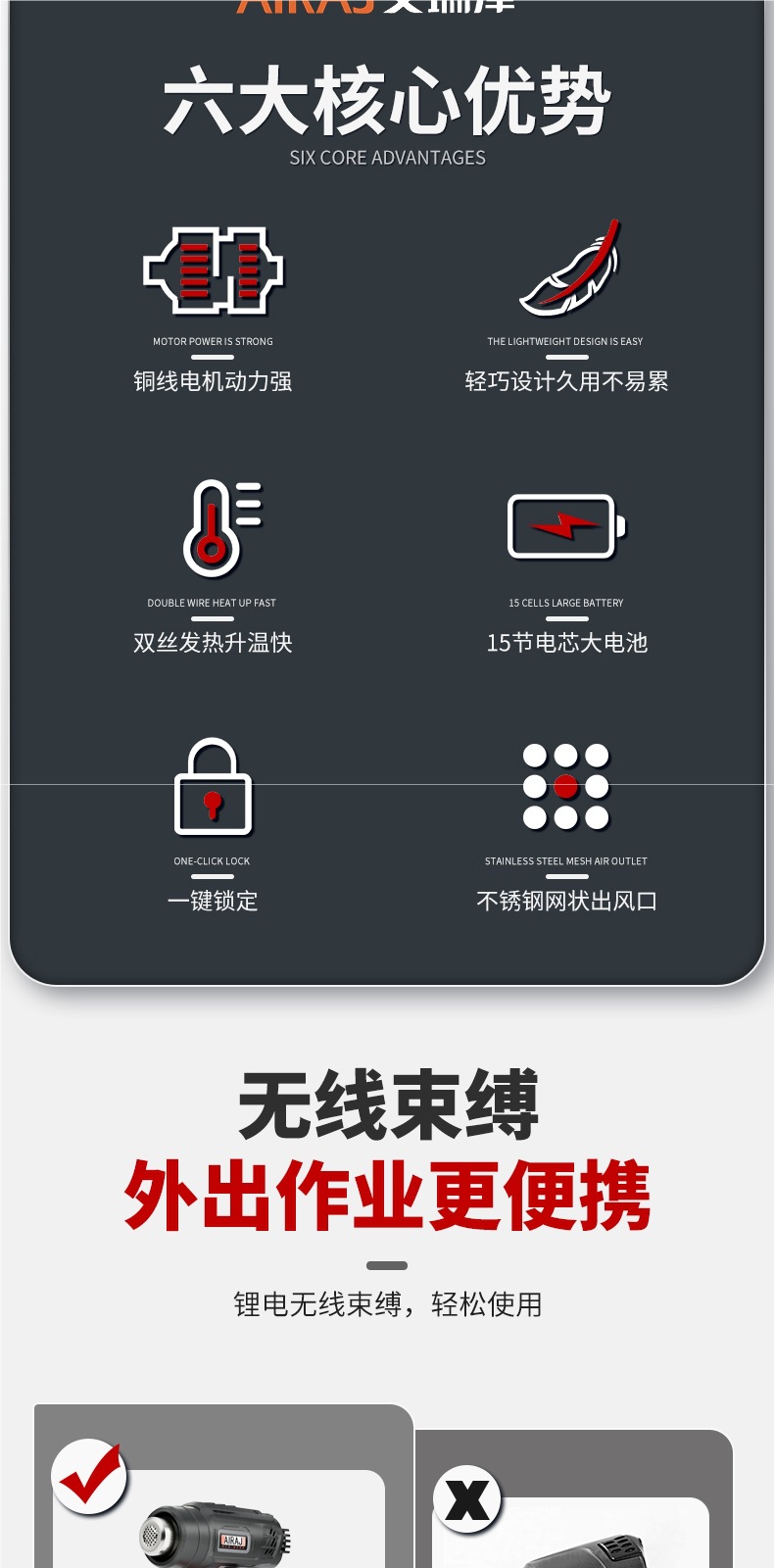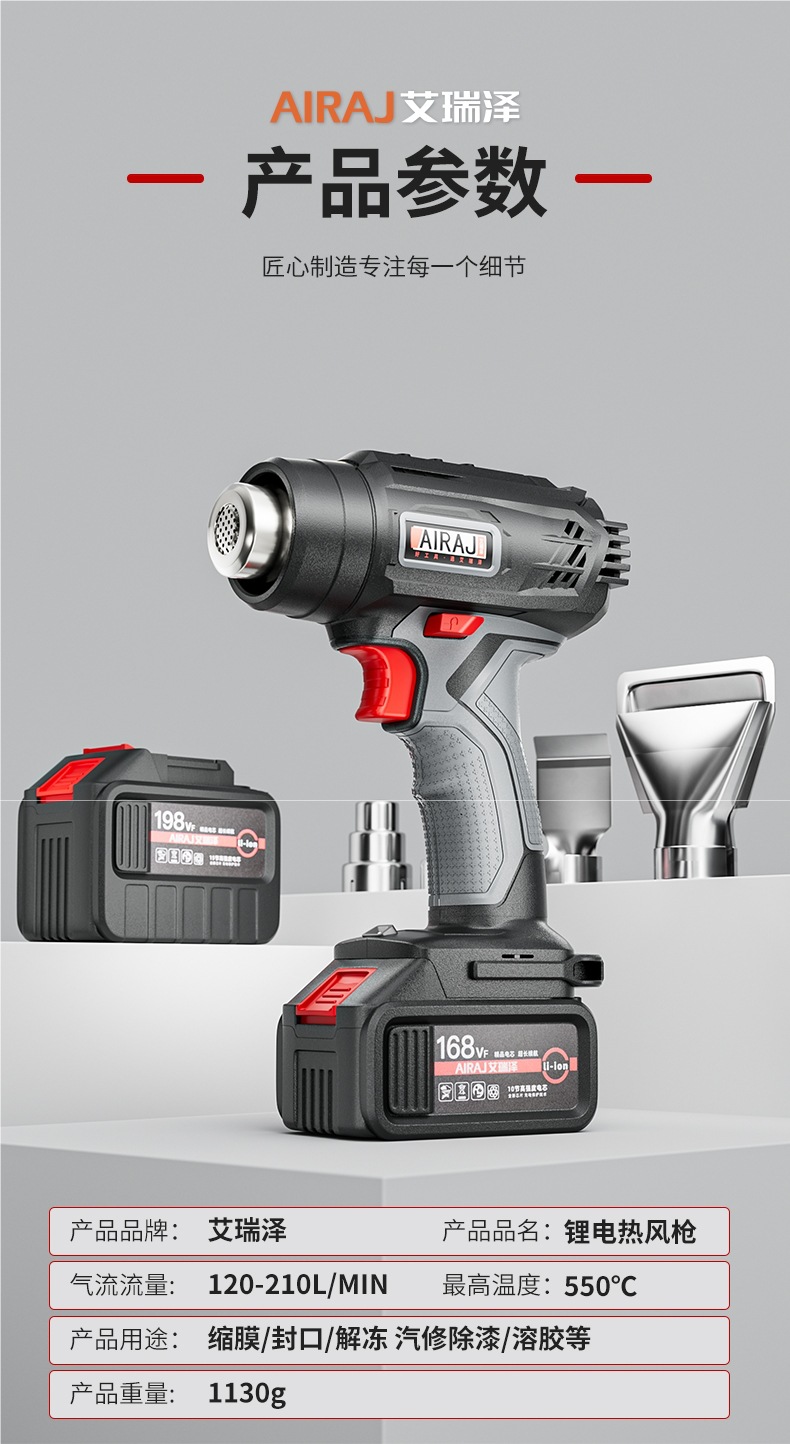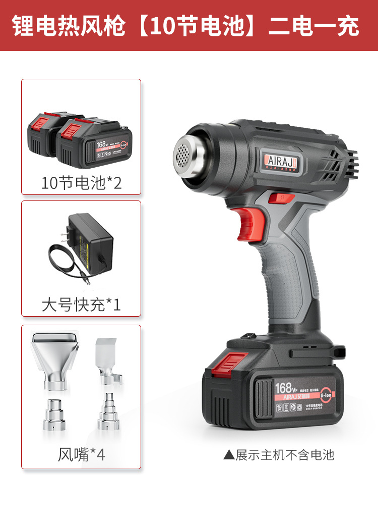 • 리튬 전기 히트건❤[강력한 배터리 셀 10개] 배터리 2개, 1회 충전 시 에어 노즐 4개 제공
