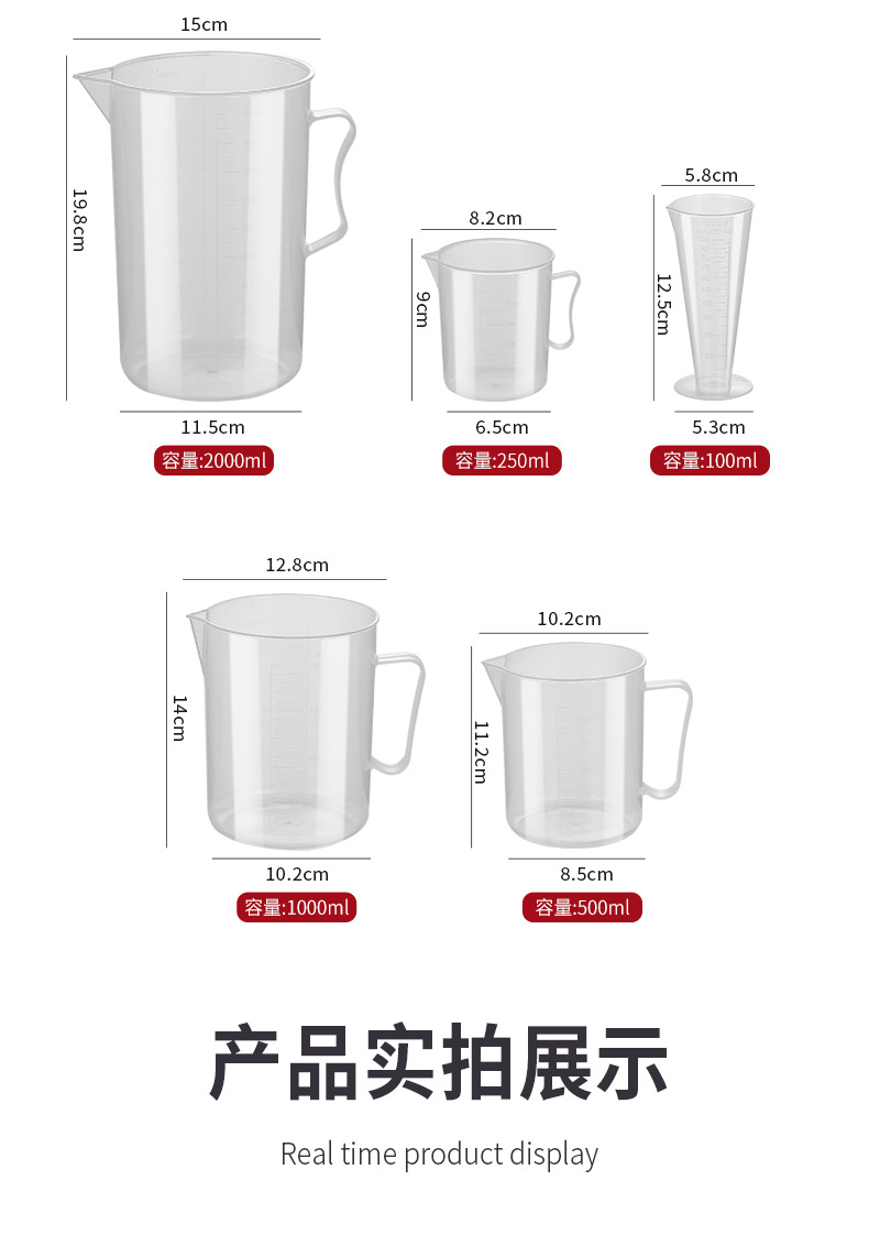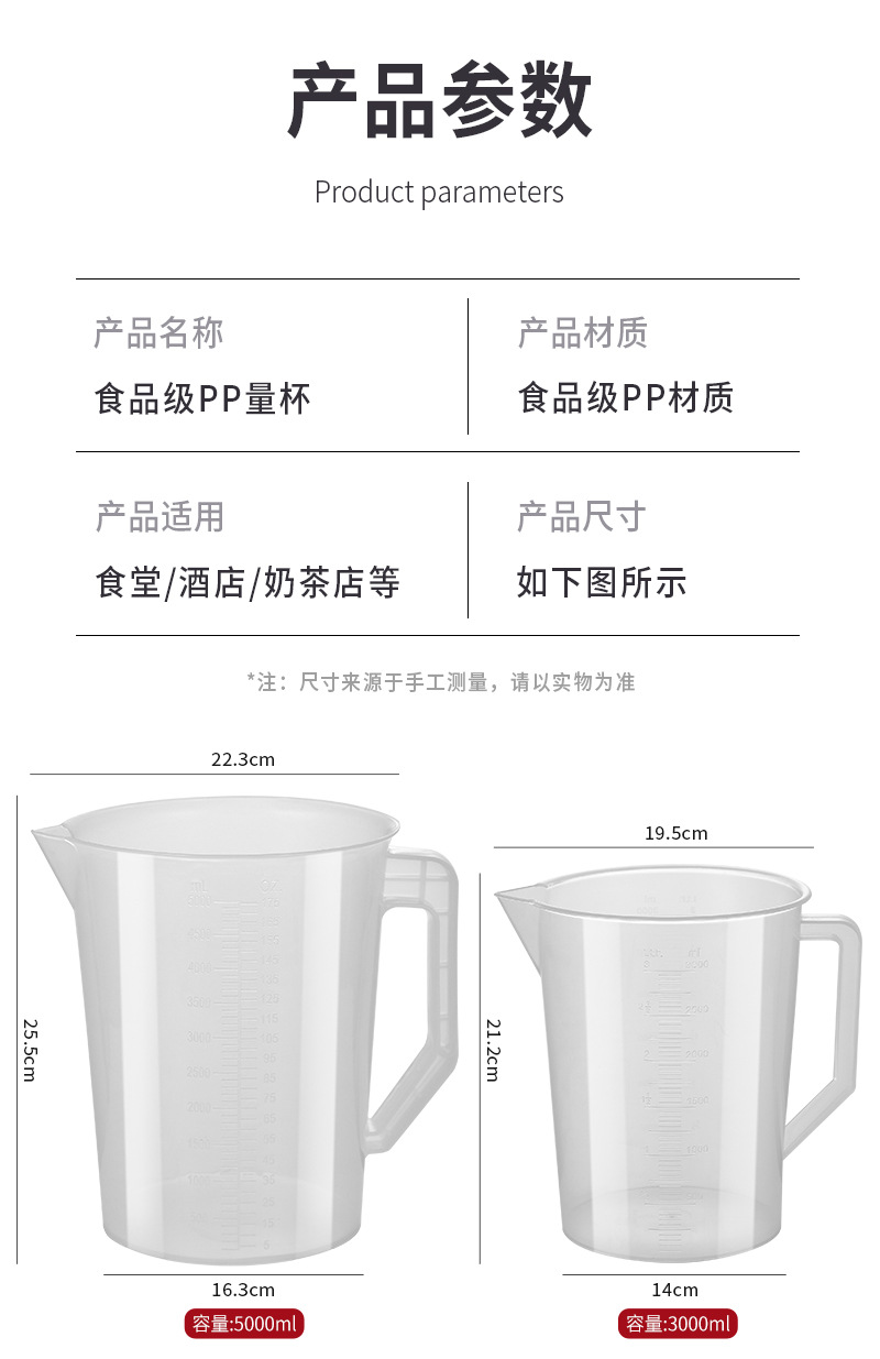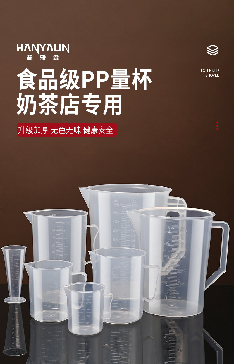 식품 등급 측정 컵 스케일 우유 차 가게 특수 플라스틱 pp 대용량 투명 측정 컵 고온 저항하는 상업용 도매