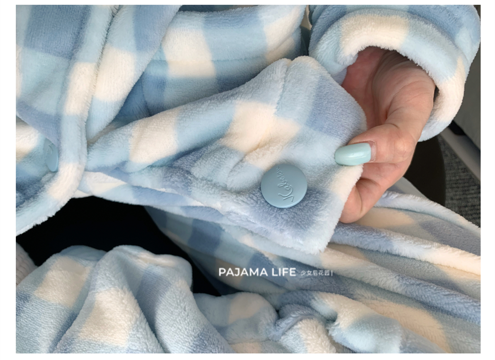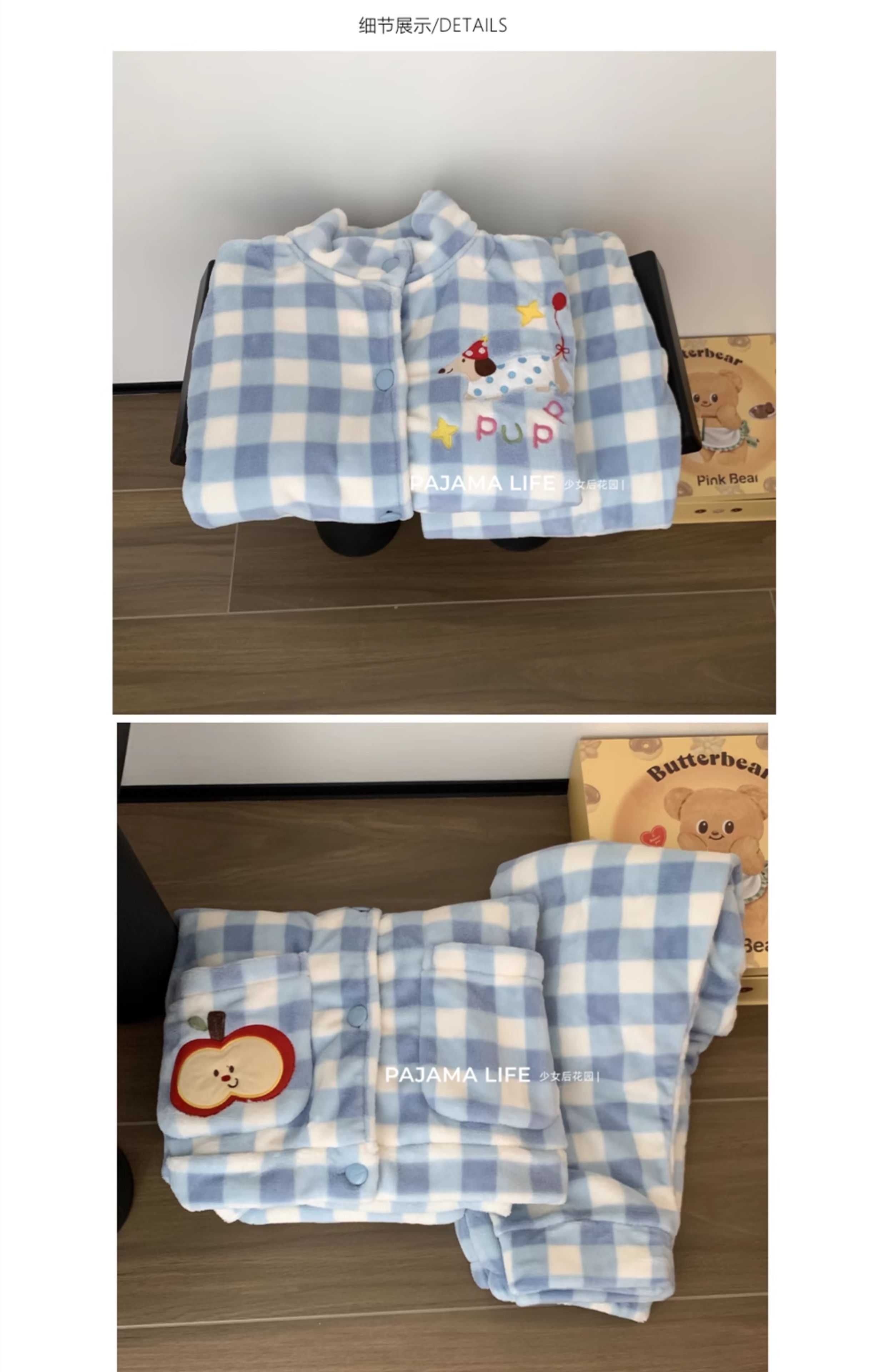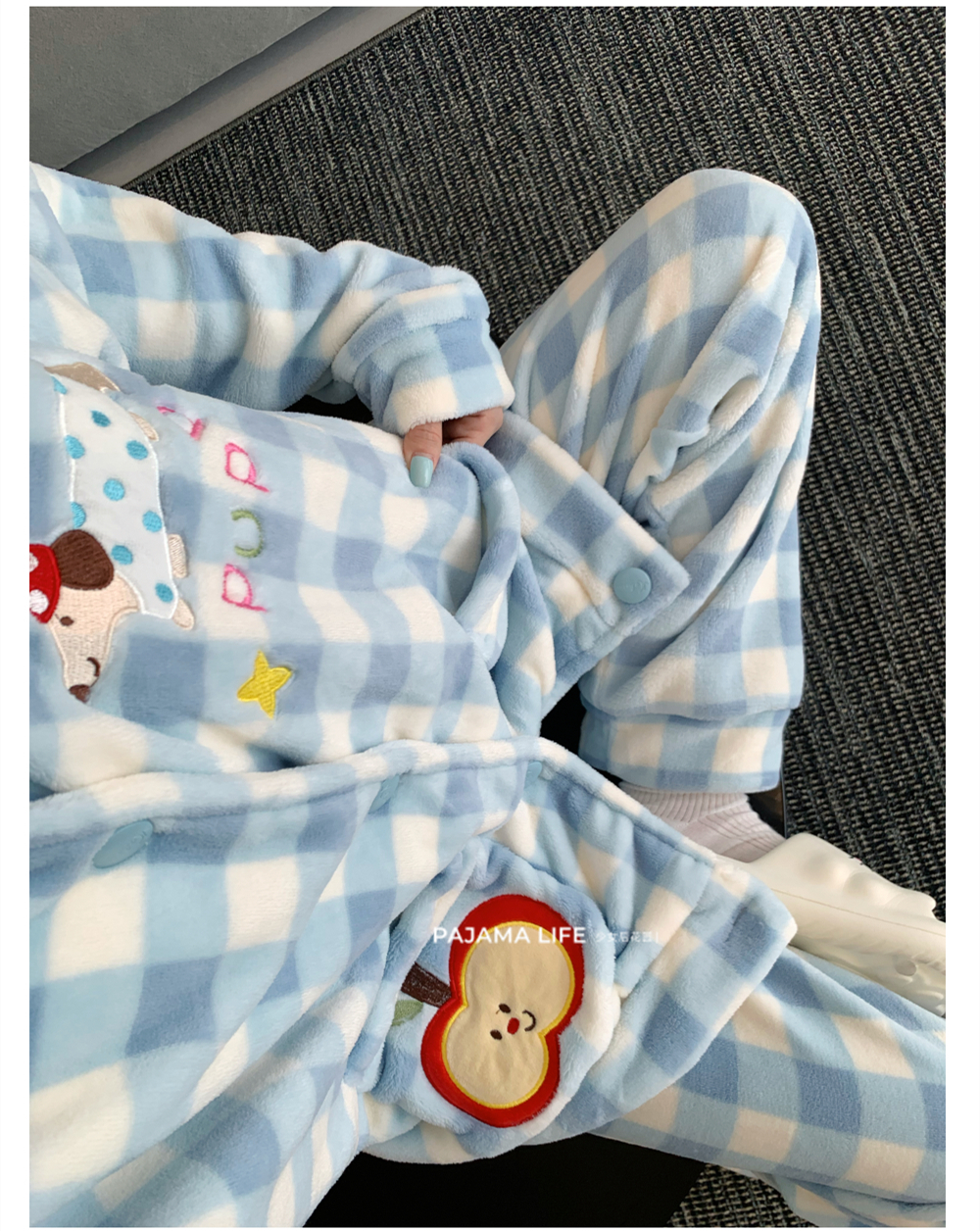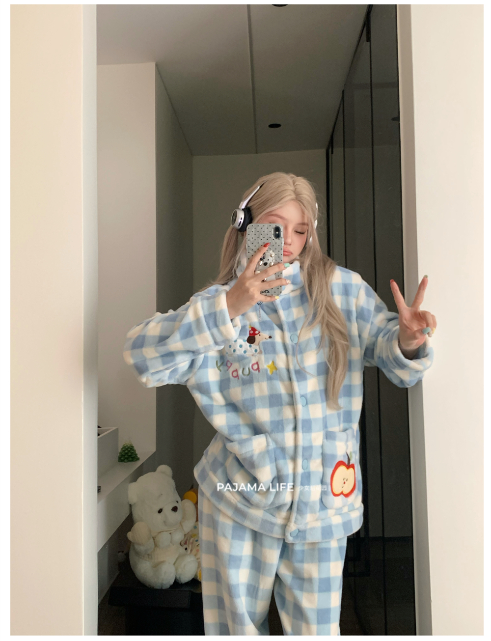 귀여운 사과 파이 강아지 산호 양털 잠옷 여성의 가을과 겨울 기모 따뜻한 높은 칼라 홈 옷 세트스토어 가기