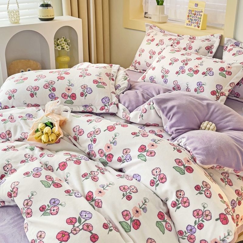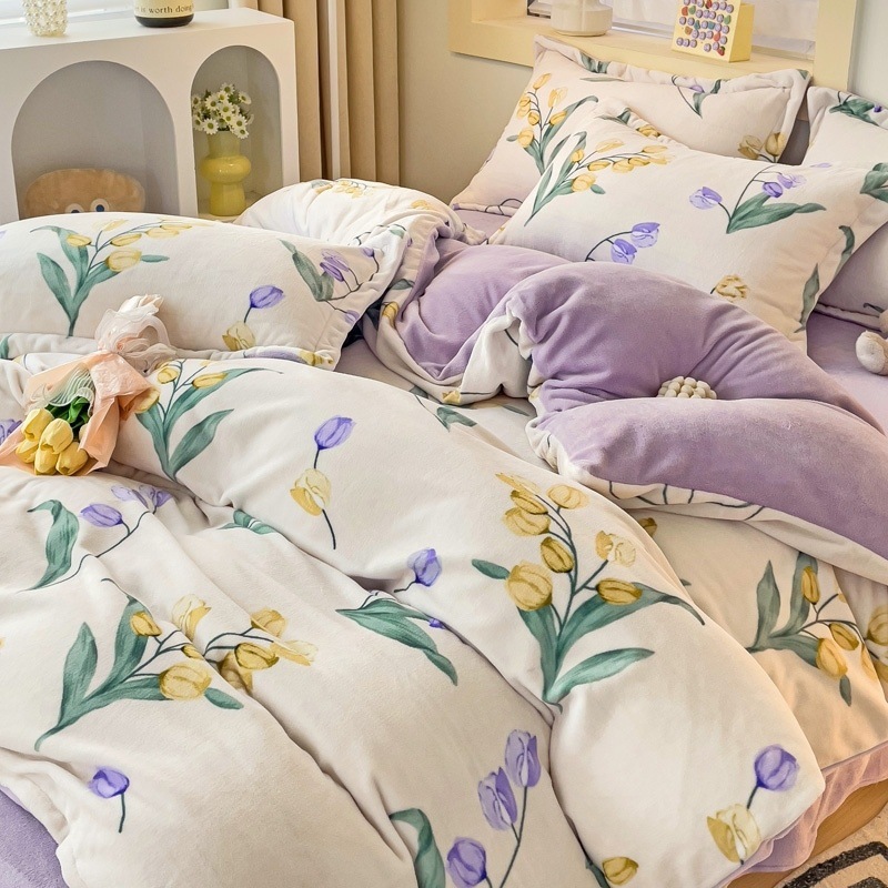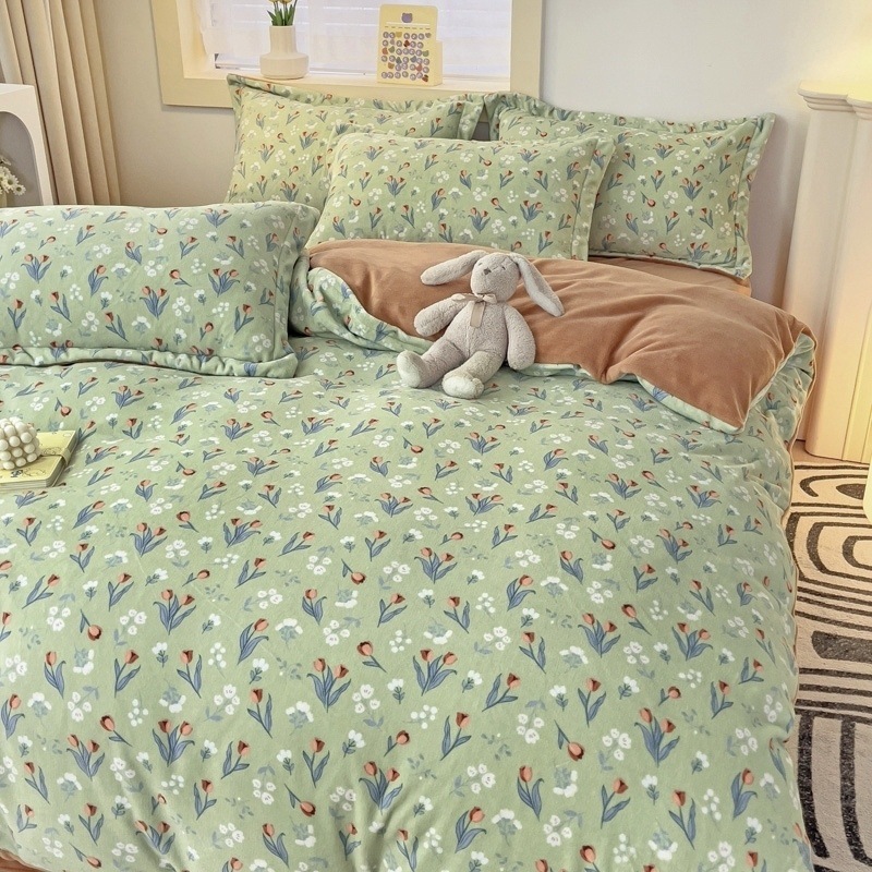 겨울 클리어런스 두꺼운 밀크 벨벳 4 피스 세트 팔레이 넬 침대 4 피스 세트 양면 기모 코랄 벨벳 3 피스 세트스토어 가기