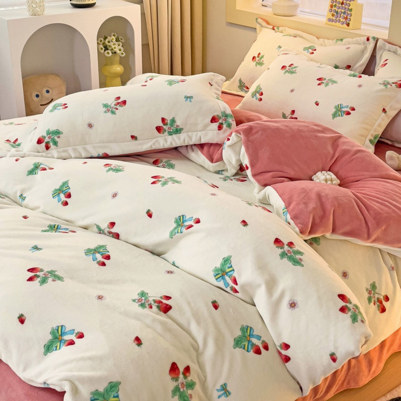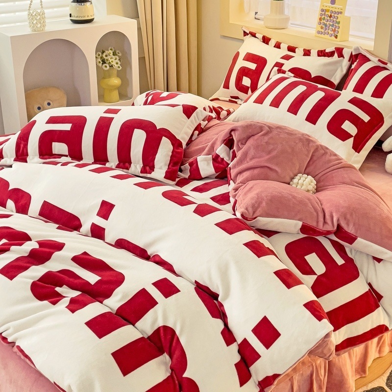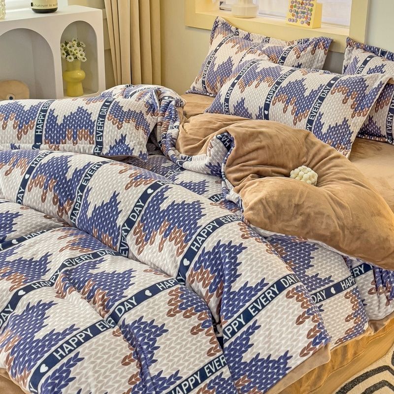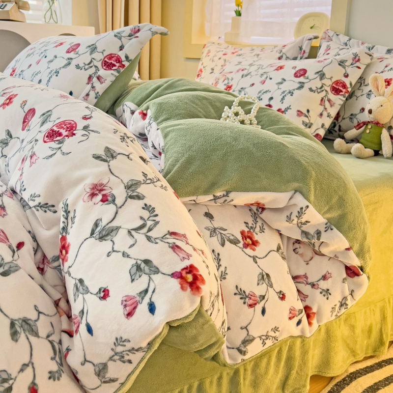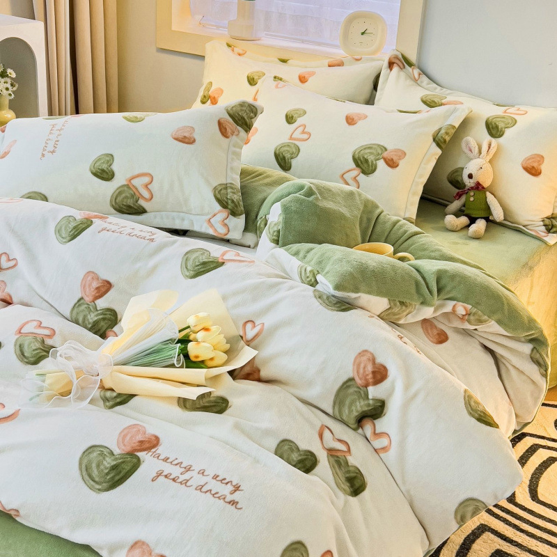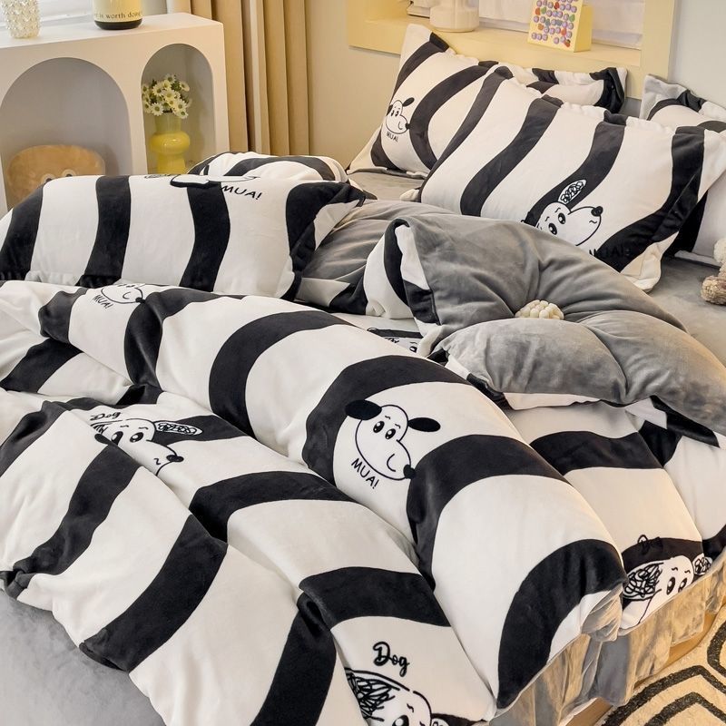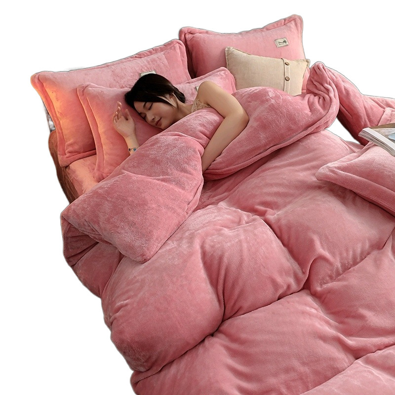 겨울 클리어런스 두꺼운 밀크 벨벳 4 피스 세트 팔레이 넬 침대 4 피스 세트 양면 기모 코랄 벨벳 3 피스 세트