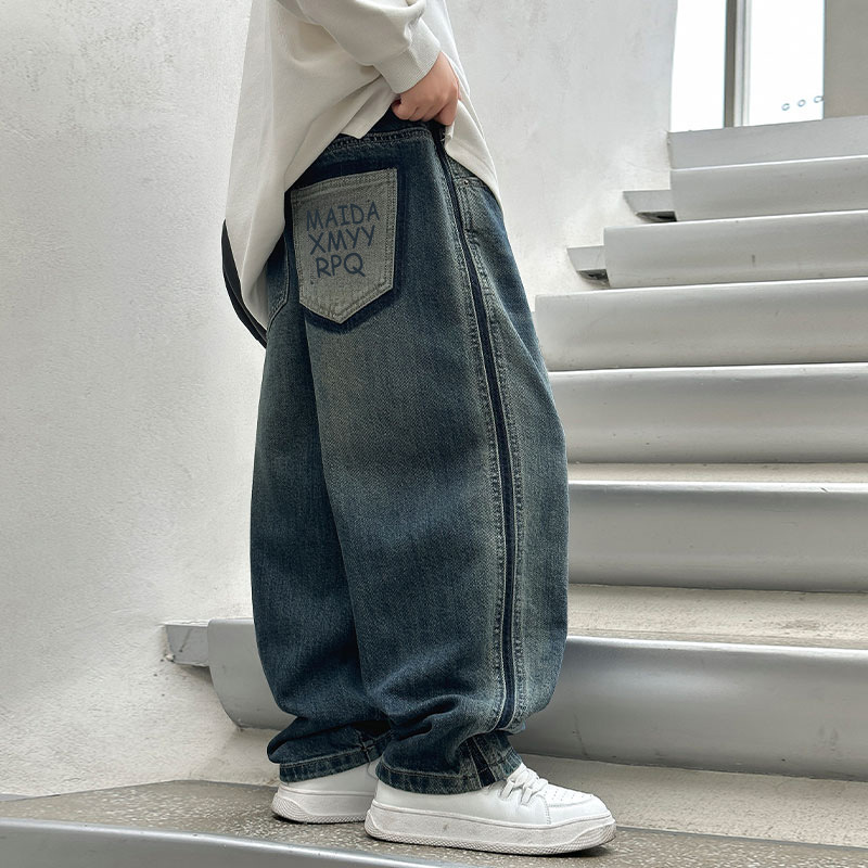 팬더 원원 2025 가을 겨울 신상 스트레이트 남아용 일체형 플리스 데님 팬츠 남아용 플리스 바지 제조업체 도매스토어 가기