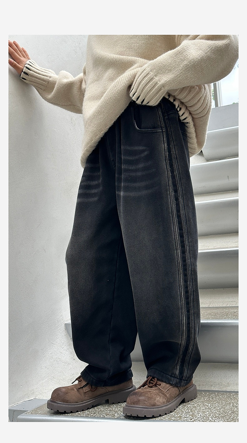 팬더 Yuanyuan 2024 가을과 겨울 새로운 스트레이트 튜브 소년 원피스 벨벳 청바지 소년과 벨벳 바지 제조 업체 도매