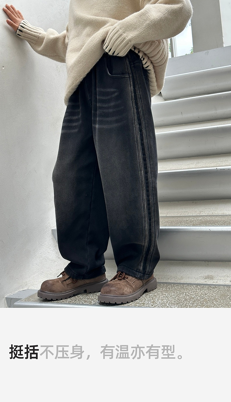 팬더 Yuanyuan 2024 가을과 겨울 새로운 스트레이트 튜브 소년 원피스 벨벳 청바지 소년과 벨벳 바지 제조 업체 도매스토어 가기