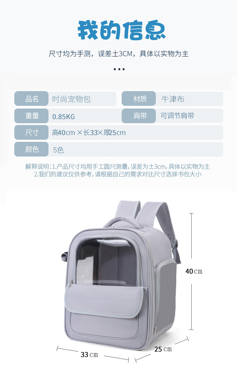고양이 가방 도매 새로운 대용량 통기성 여행 애완 동물 배낭 국경 간 휴대용 사이드 오픈 대형 공간 애완 동물 가방스토어 가기