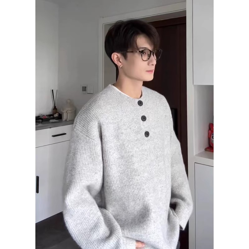 그레이 헨리 칼라 스웨터 남자 겨울 게으른 스타일 하이 엔드 센스 POLO 니트 스웨터 트렌디 브랜드 버튼베이스 스웨터스토어 가기
