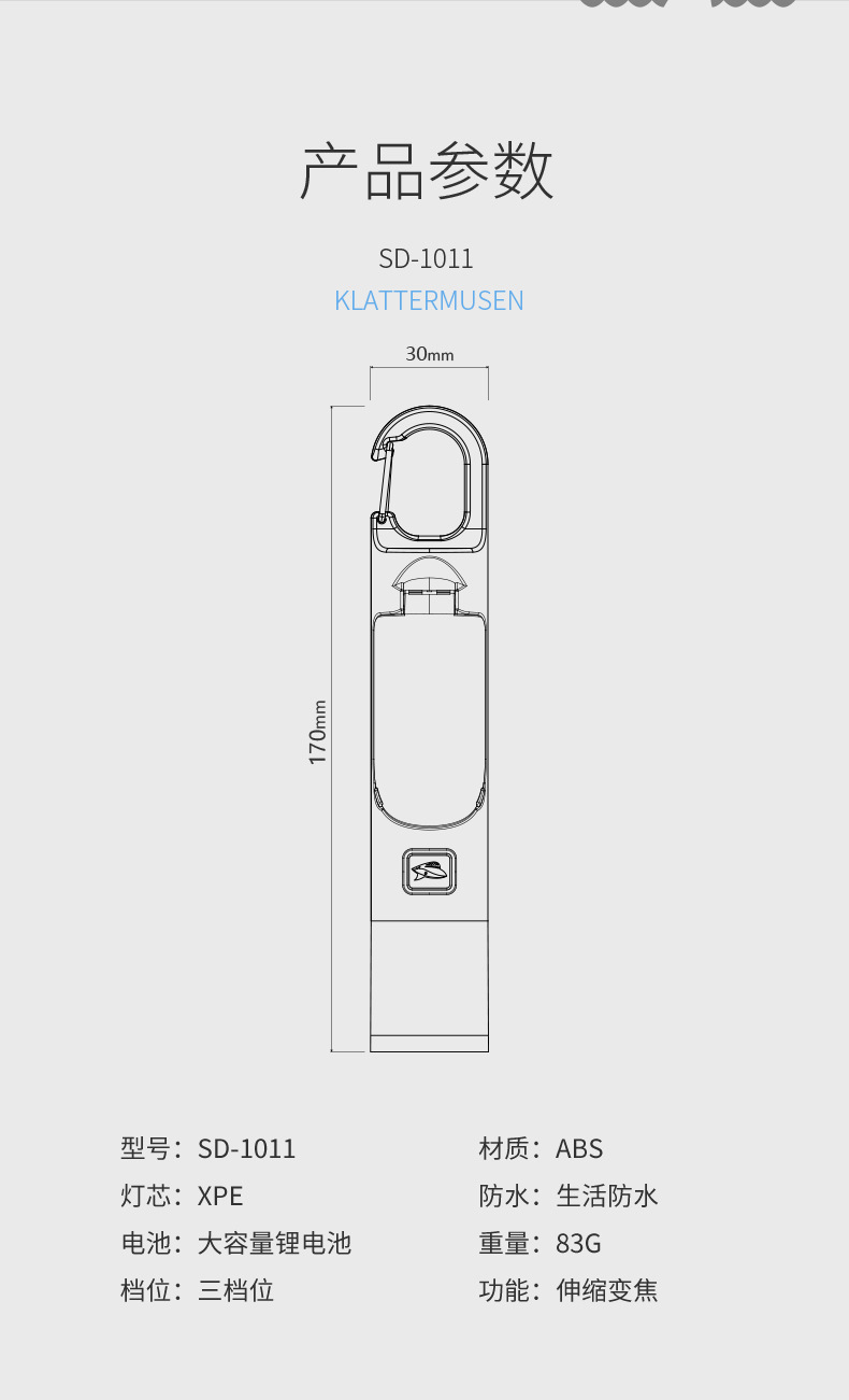 • 1011B 접이식 다기능 손전등 - 회색 [내장 배터리 2500MAH]