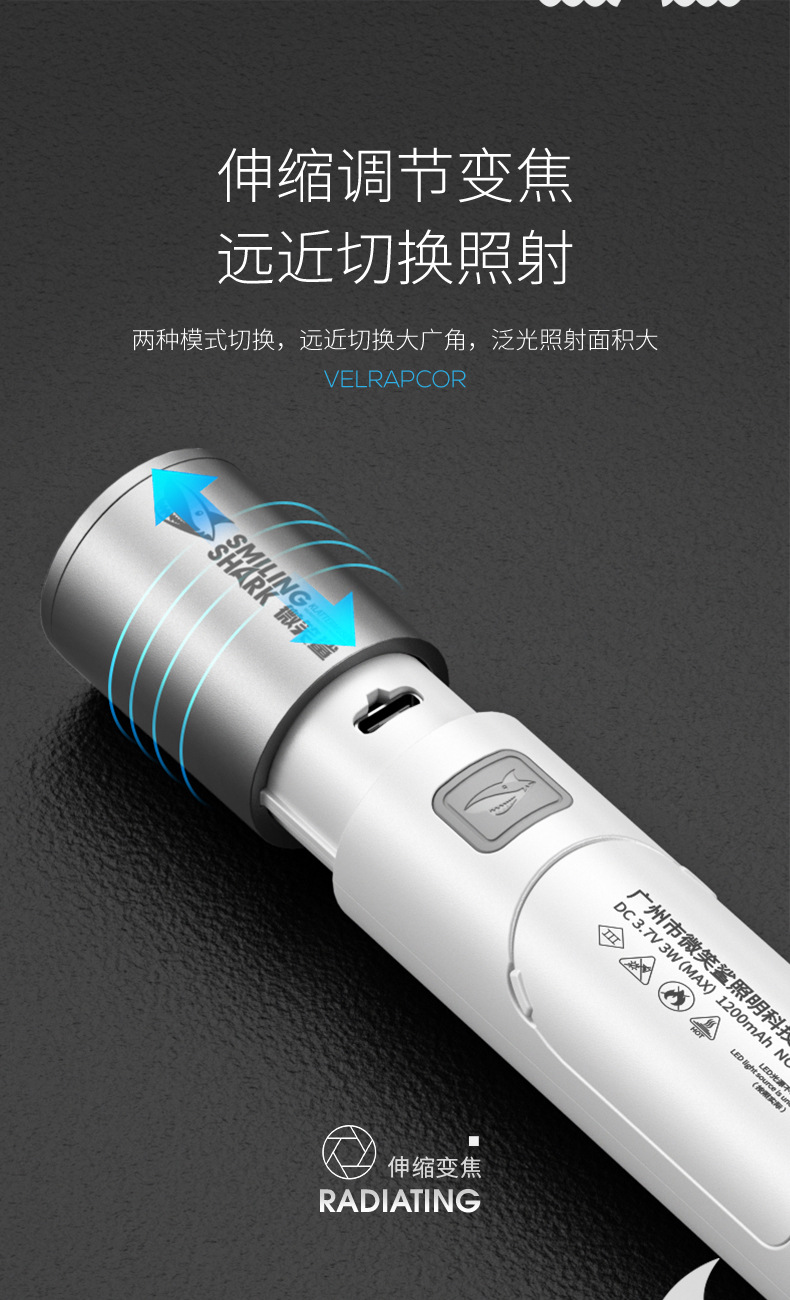 • 1019 텔레스코픽 손전등-화이트 [내장 배터리 1200MAH]