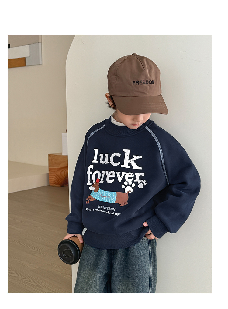 해마가족 남아용 스웨트셔츠, 기모 및 두꺼운 소재, 남아 가을/겨울 의류, 2025년 신상품, 중대형 아동용 겨울 상의, 아동복스토어 가기