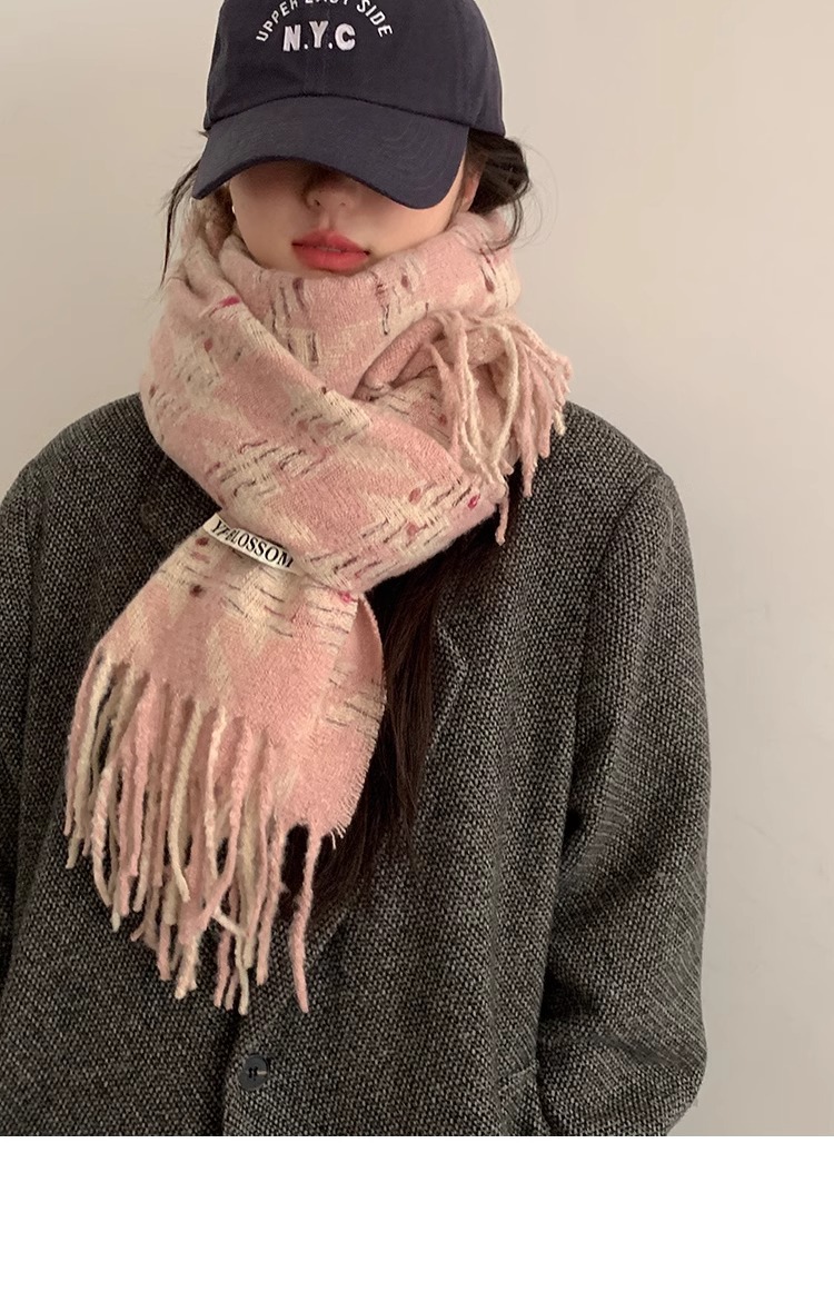 핑크 하운스투스 스카프 여자 가을 · 겨울 롱 올매치… 학생 남성용 일본 · 한국 최고급 두꺼운 따뜻한 목