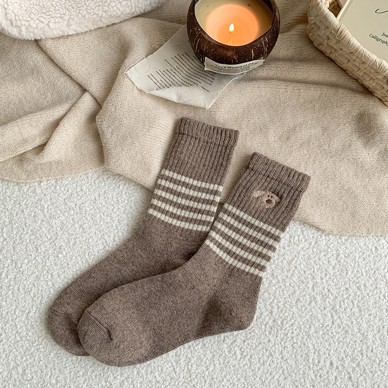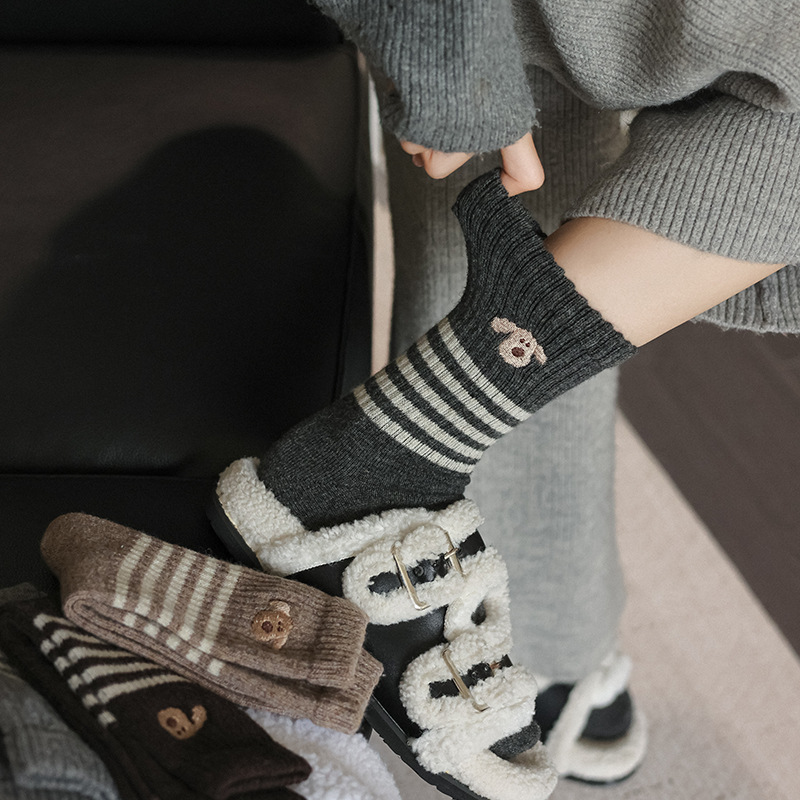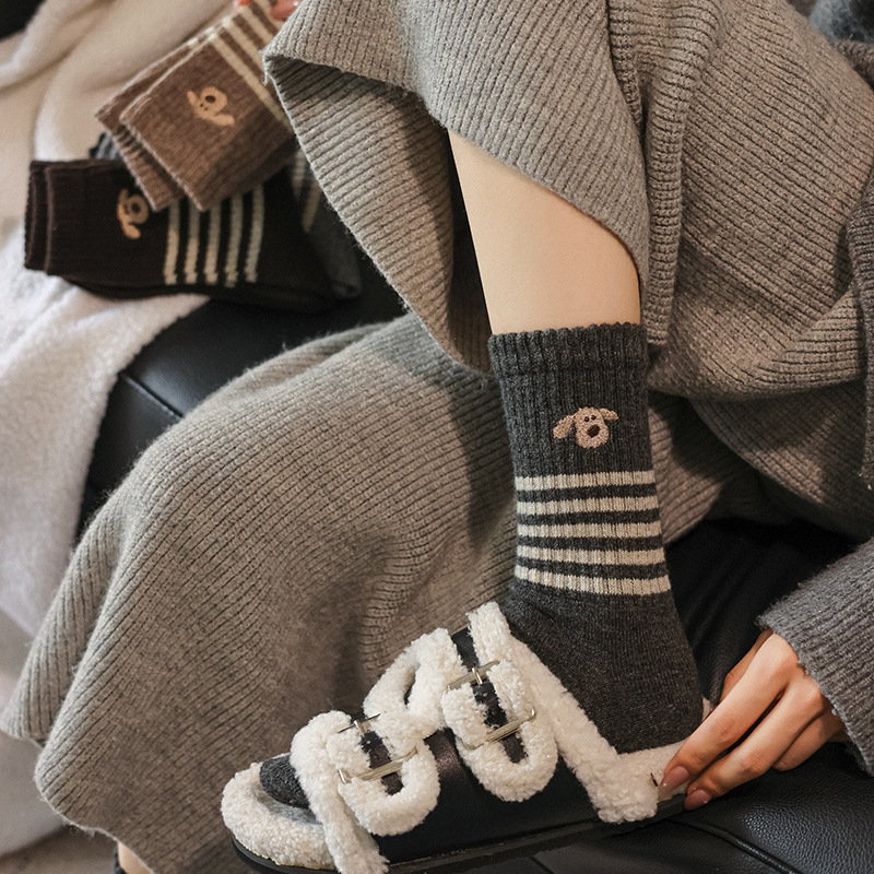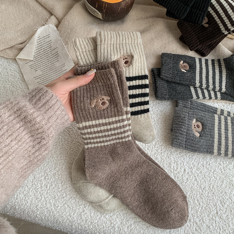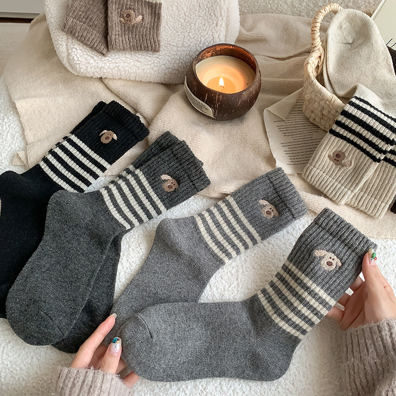 울 양말 줄무늬 양말 어린이 중간 튜브 양말 가을과 겨울 두꺼운 기모 따뜻한 패션 귀여운 개 더미 양말스토어 가기