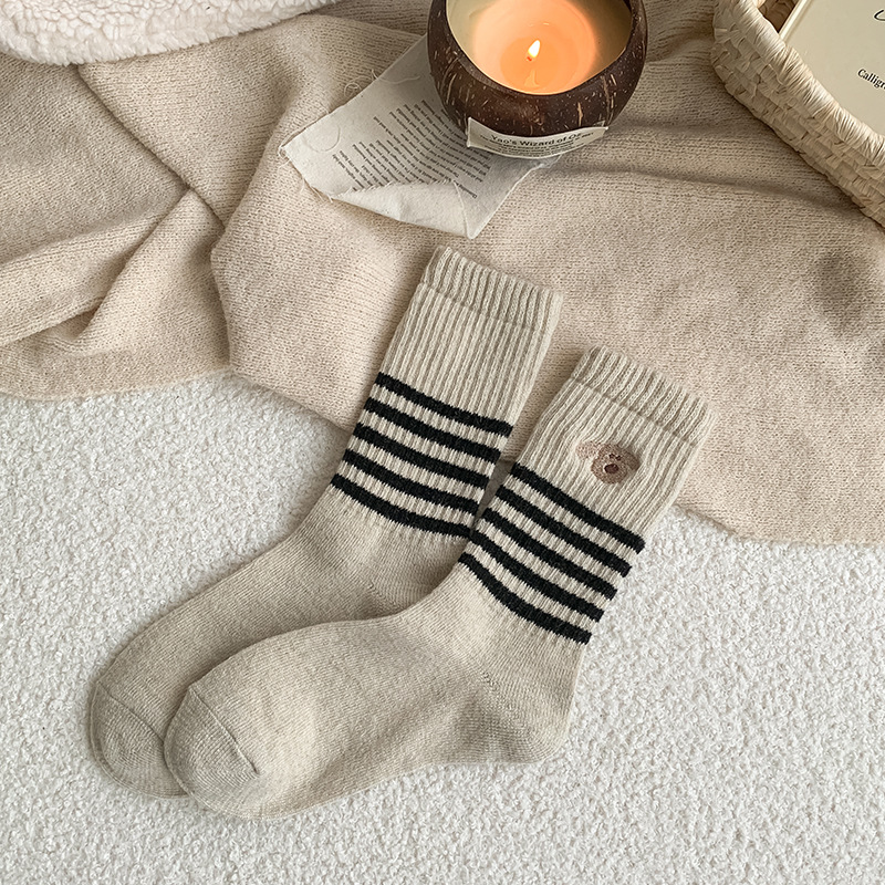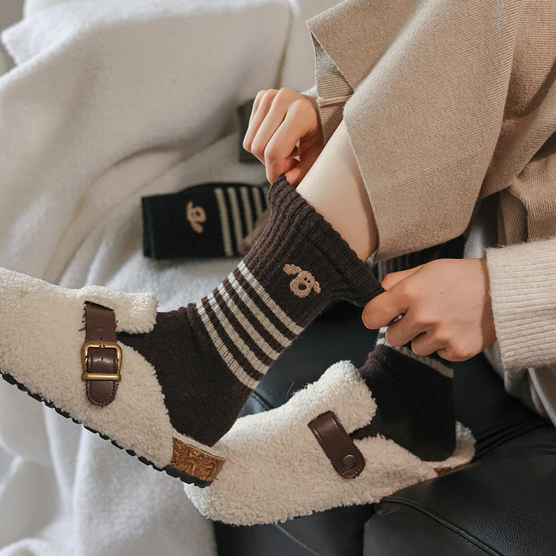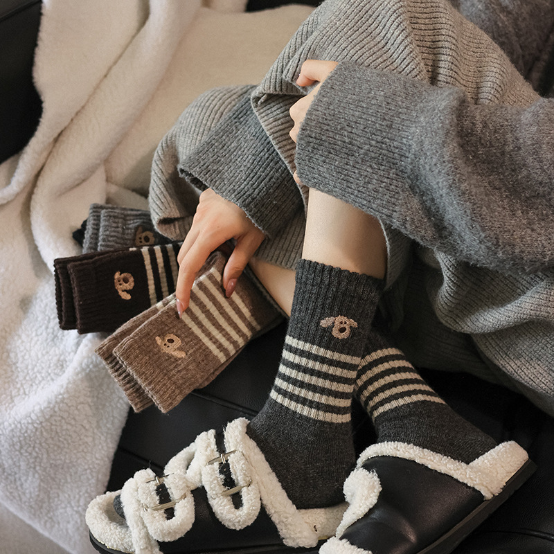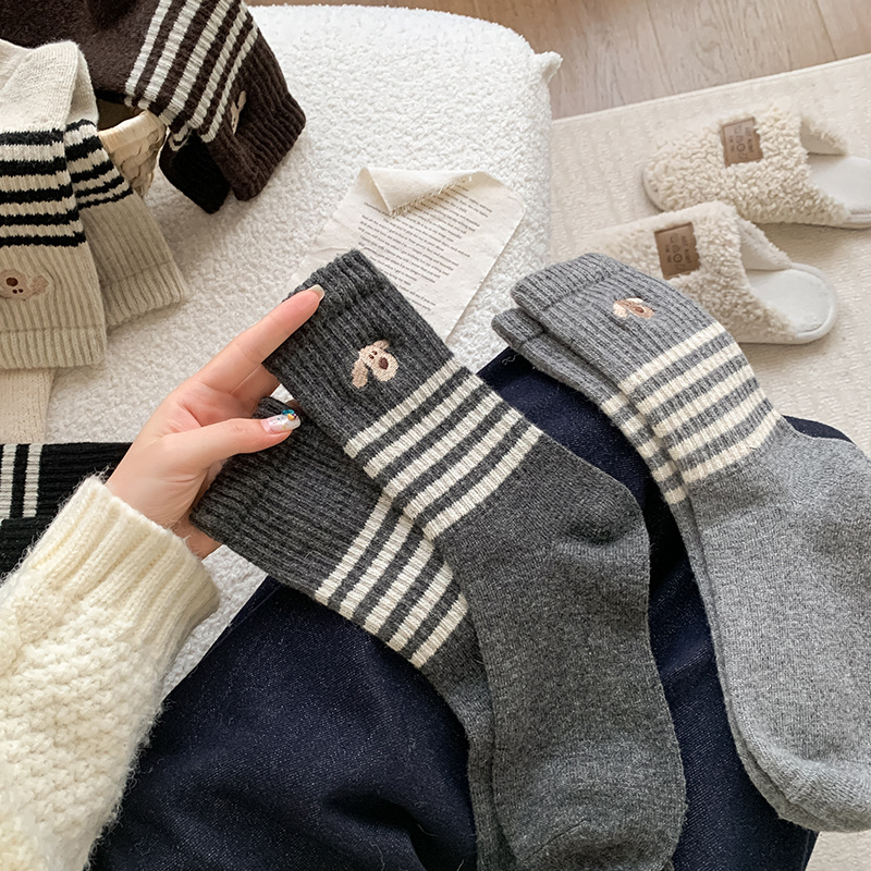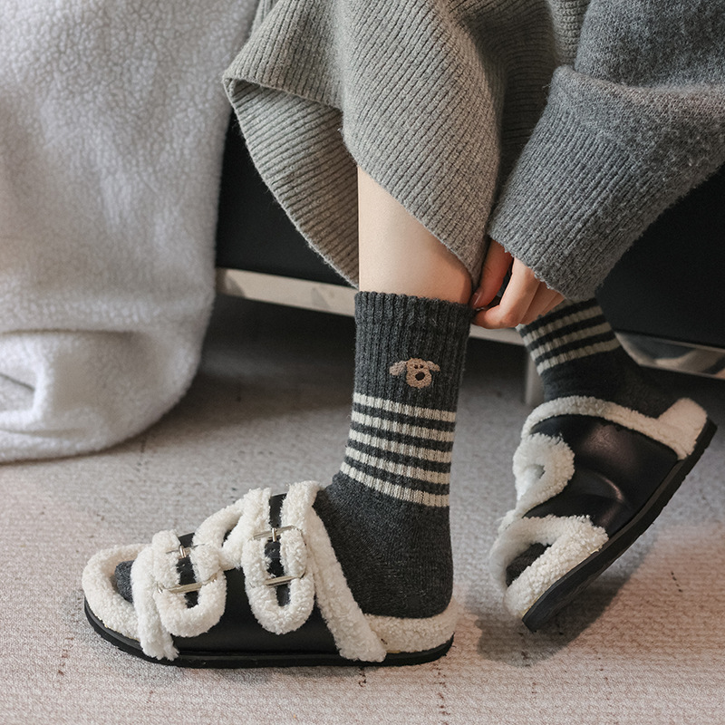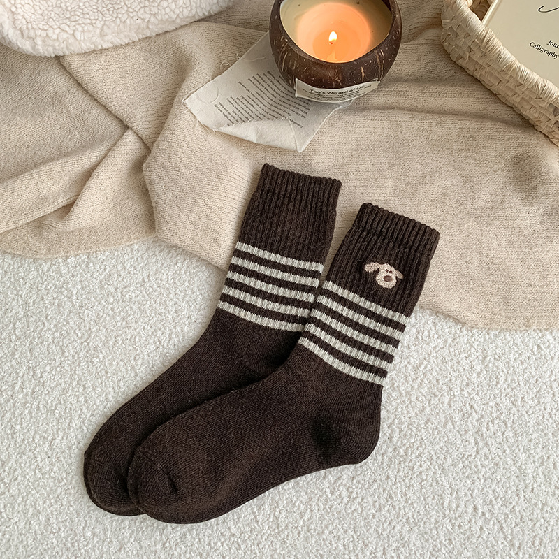 울 양말 줄무늬 양말 어린이 중간 튜브 양말 가을과 겨울 두꺼운 기모 따뜻한 패션 귀여운 개 더미 양말스토어 가기