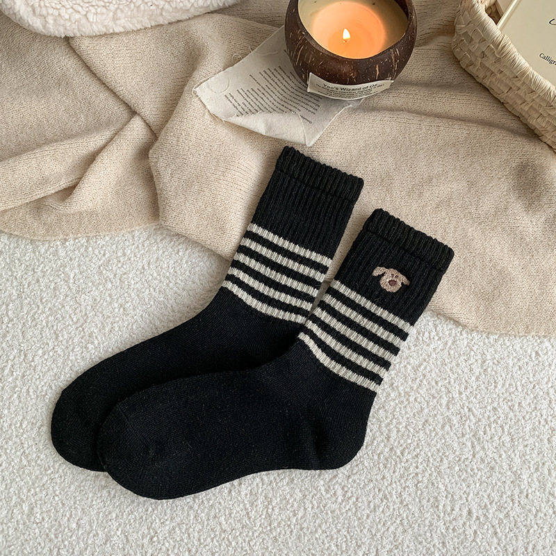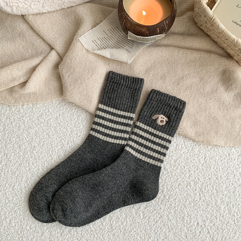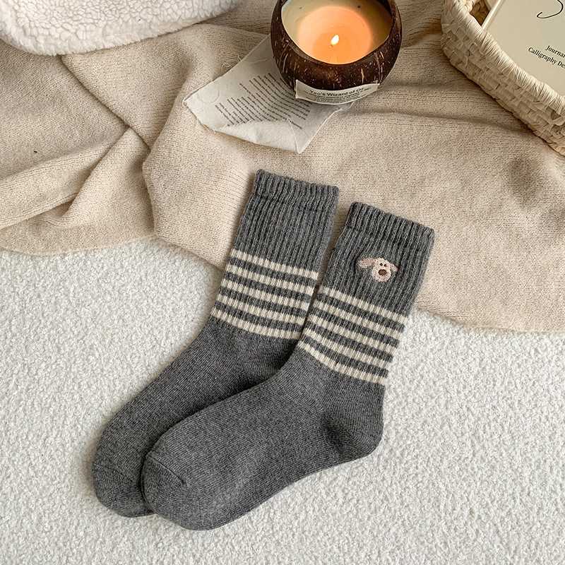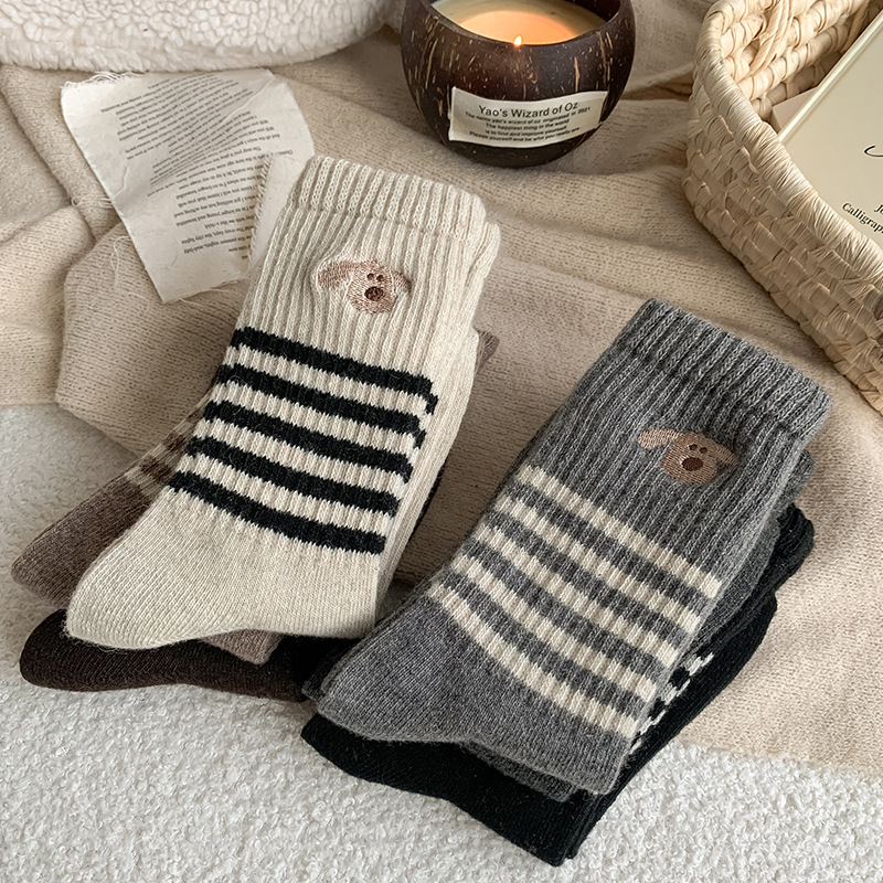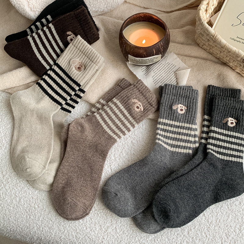 울 양말 줄무늬 양말 어린이 중간 튜브 양말 가을과 겨울 두꺼운 기모 따뜻한 패션 귀여운 개 더미 양말