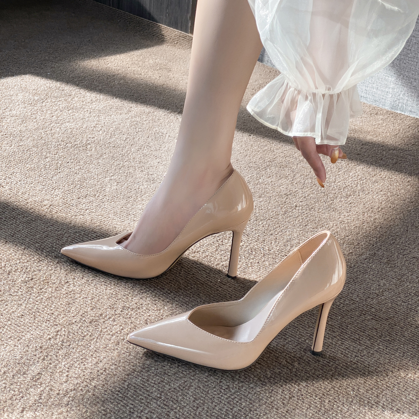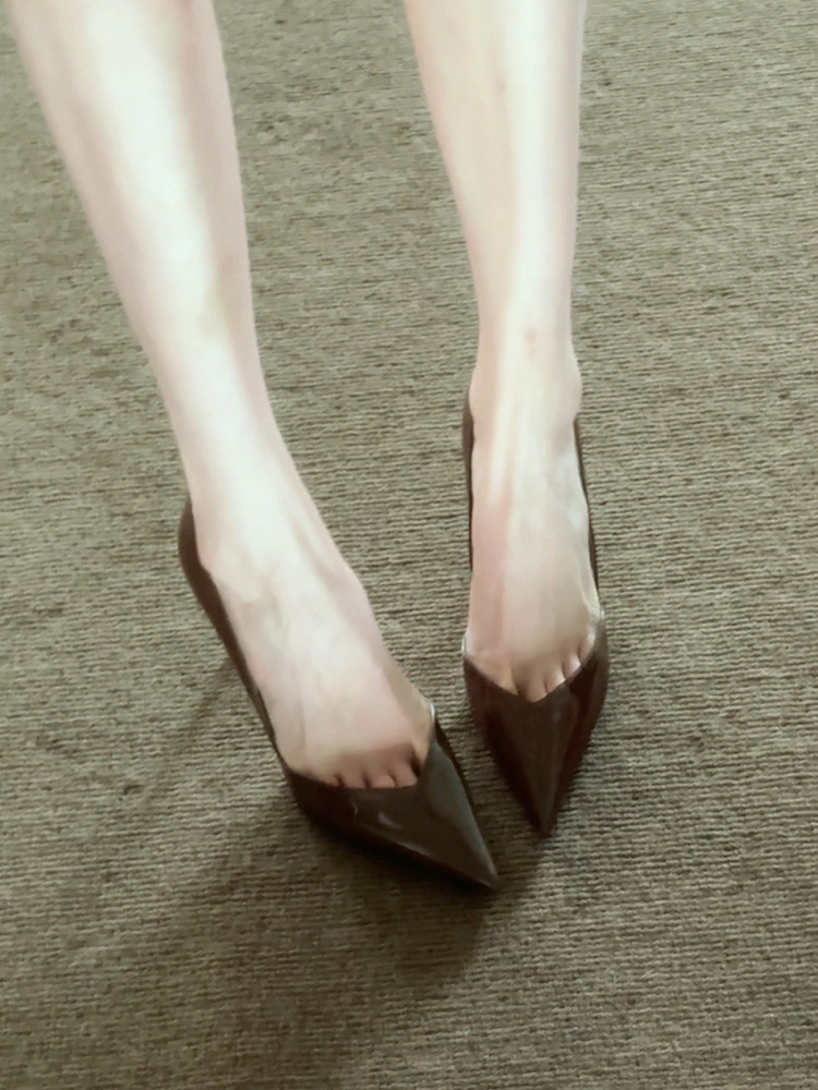 2025 봄과 가을 새로운 스틸레토 힐 뾰족한 하이힐 여성의 피곤하지 않은 발 섹시한 우아한 아름다운 다크 브라운 얕은 입 싱글 신발스토어 가기