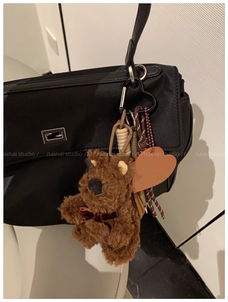 다크 브라운 웨스트 하이랜드 펜던트 ~ 미우 스타일 가죽 러브 백 펜던트 플러시 귀여운 스크럽 강아지 키 체인스토어 가기