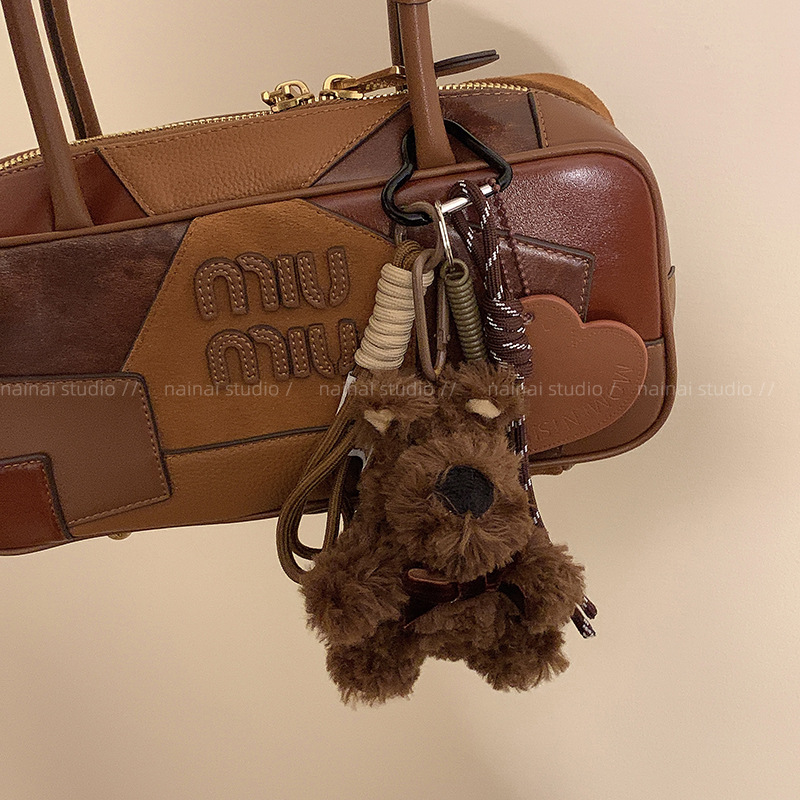 다크 브라운 웨스트 하이랜드 펜던트 ~ 미우 스타일 가죽 러브 백 펜던트 플러시 귀여운 스크럽 강아지 키 체인