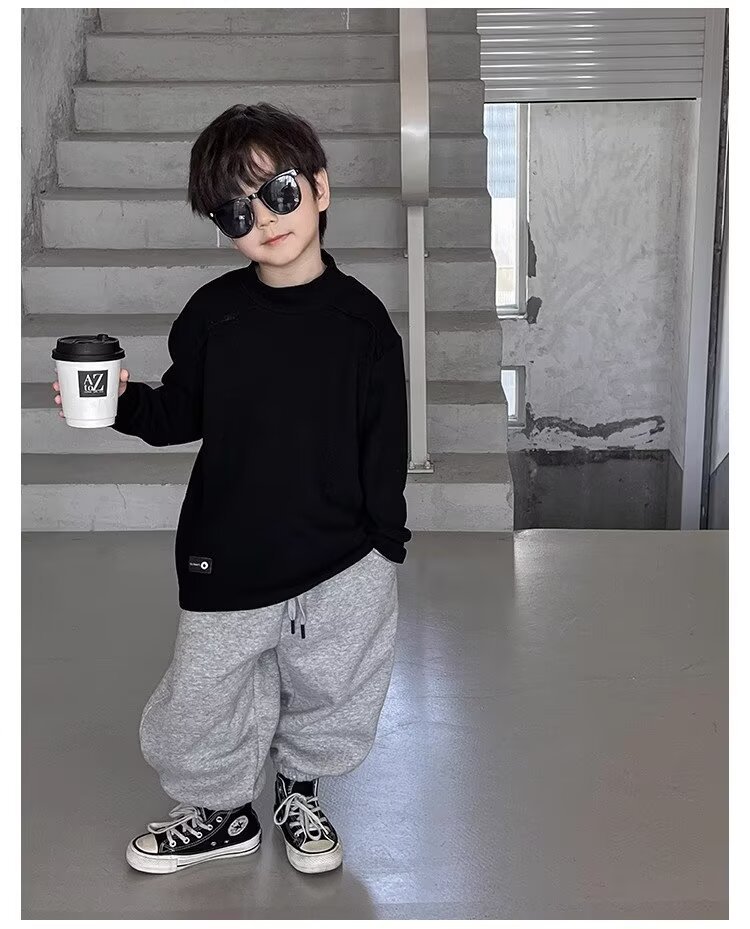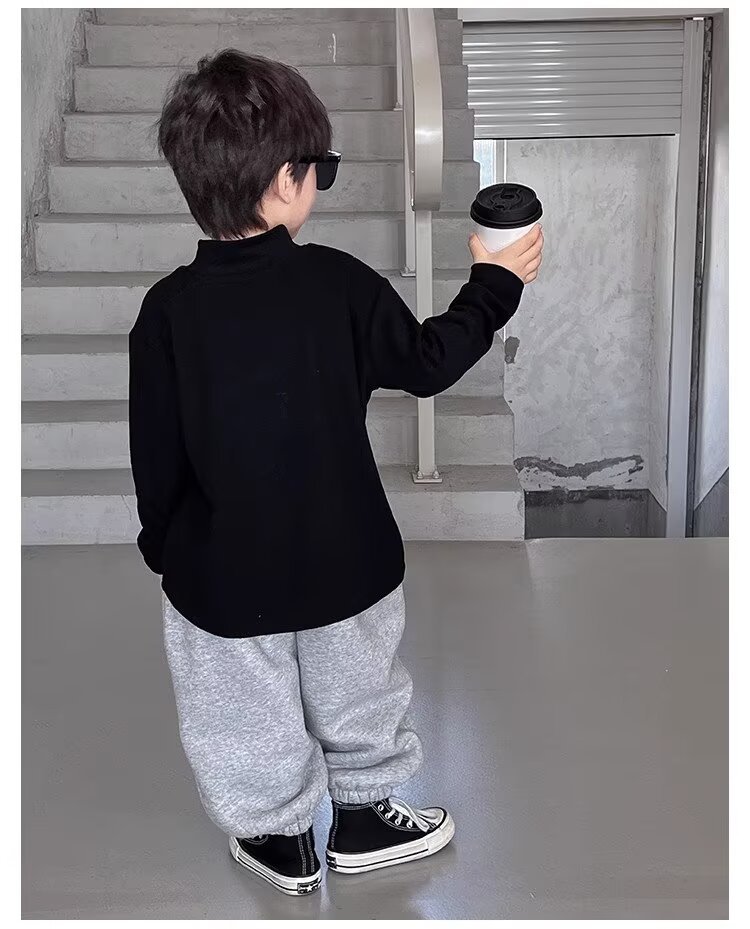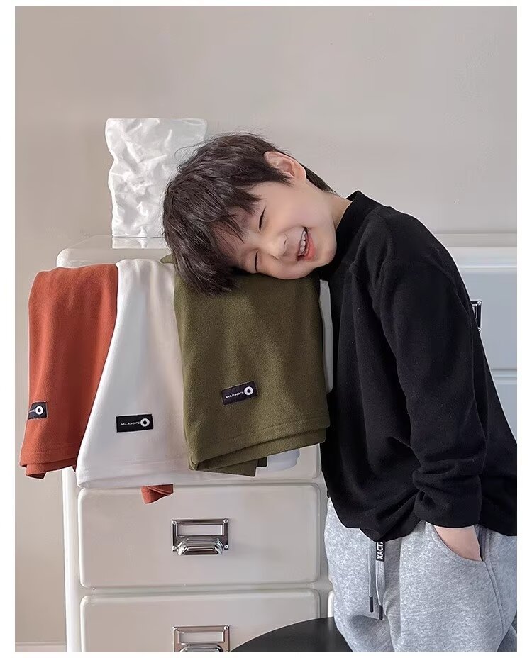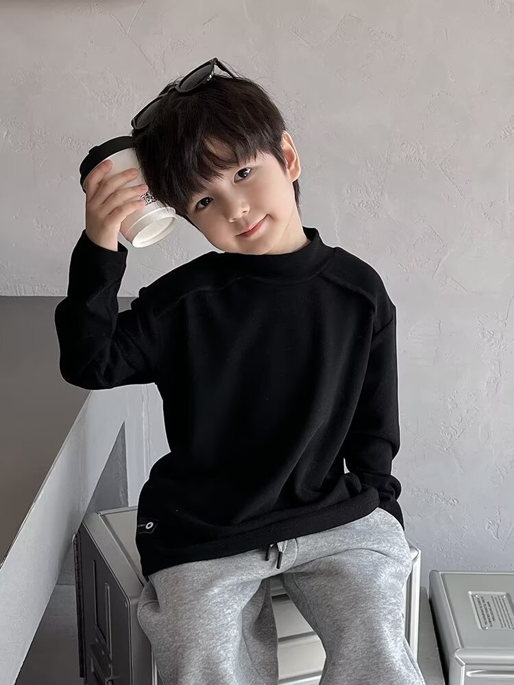 소년 화이트 하프 하이 칼라 베이스 셔츠 가을과 겨울 2024 새로운 스타일 탑 어린이 겨울 긴 소매 내부 따뜻한 티셔츠스토어 가기