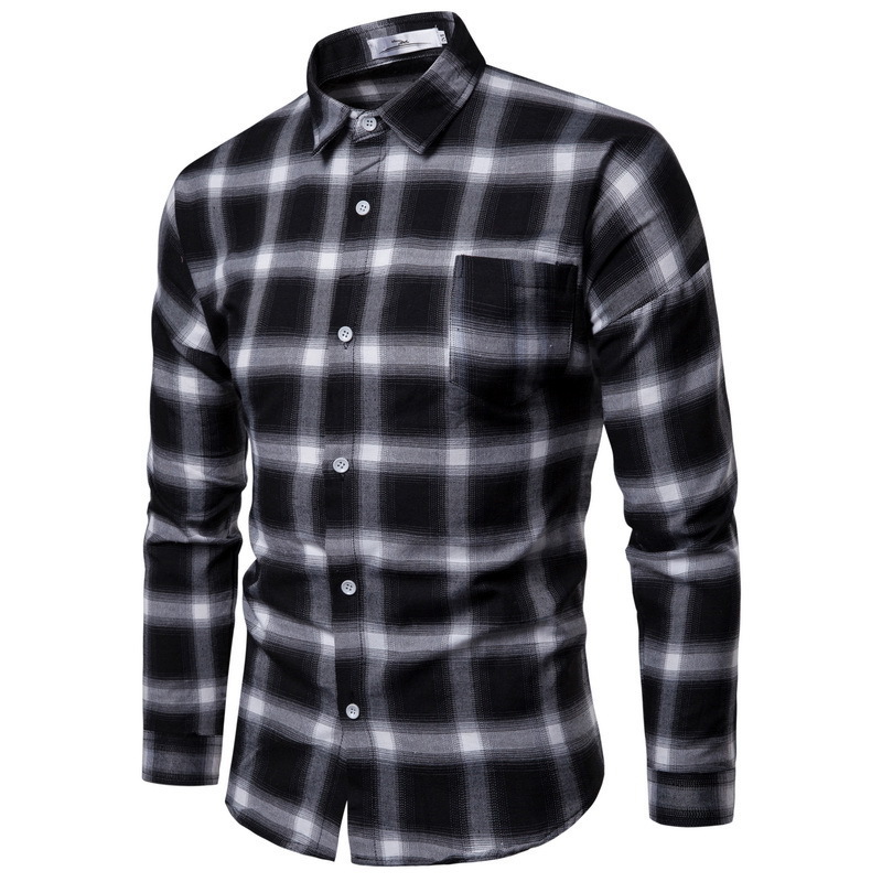 국경 간 아마존 대외 무역 유럽과 미국 남성 봄과 가을 새로운 한국 트렌드 긴 소매 격자 무늬 셔츠 남성 셔츠스토어 가기