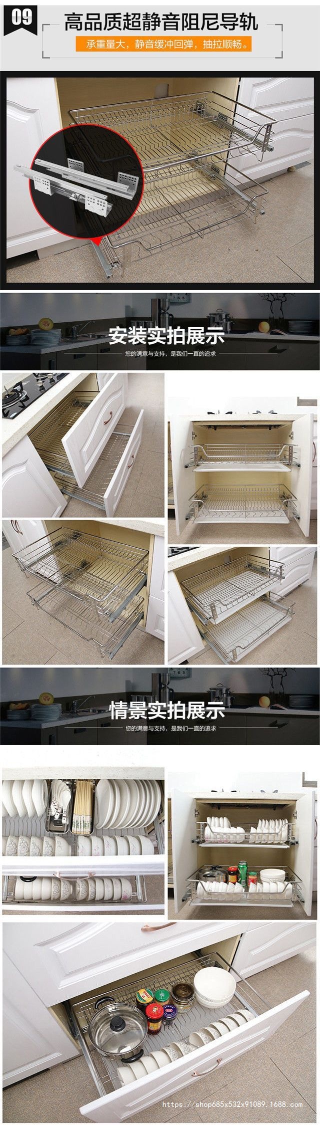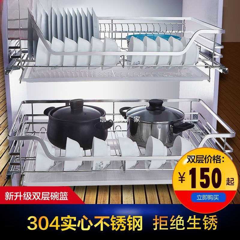 304 서랍 바구니 스테인레스 스틸 솔리드 댐핑 쿠션 캐비닛 서랍 서랍 접시 랙 더블 레이어 식기 주방 그릇 서랍 바구니스토어 가기
