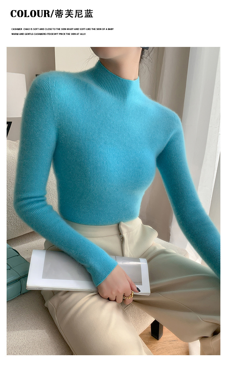 100% 순수 캐시미어 프린지 투 웨어 하프 터틀넥 캐시미어 스웨터 여성용 슬림 핏 슬림 얇은 니트 베이스 스웨터