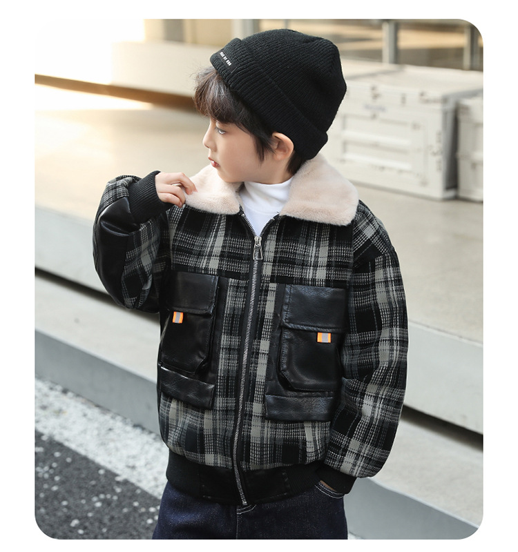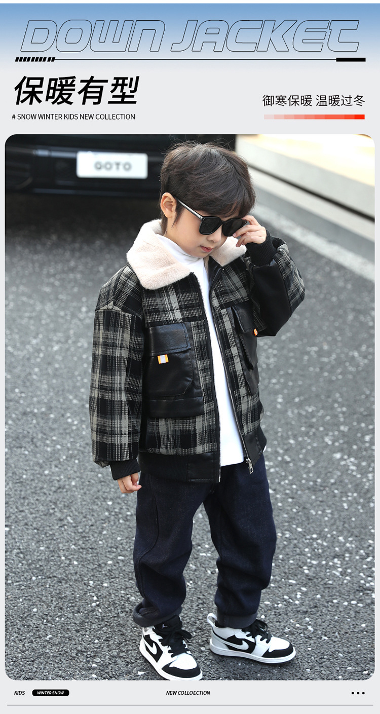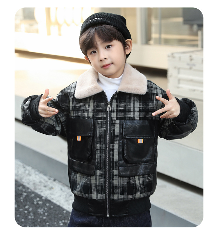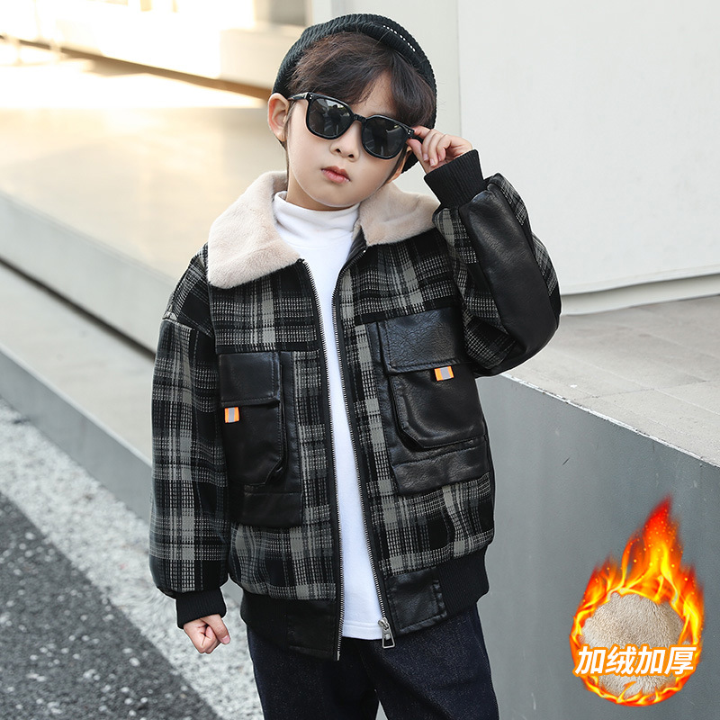 두꺼운 대형 어린이 자켓 따뜻한 가죽 코트 2024 새로운 캐주얼 코트 기모 소년 겨울 가죽 코트스토어 가기