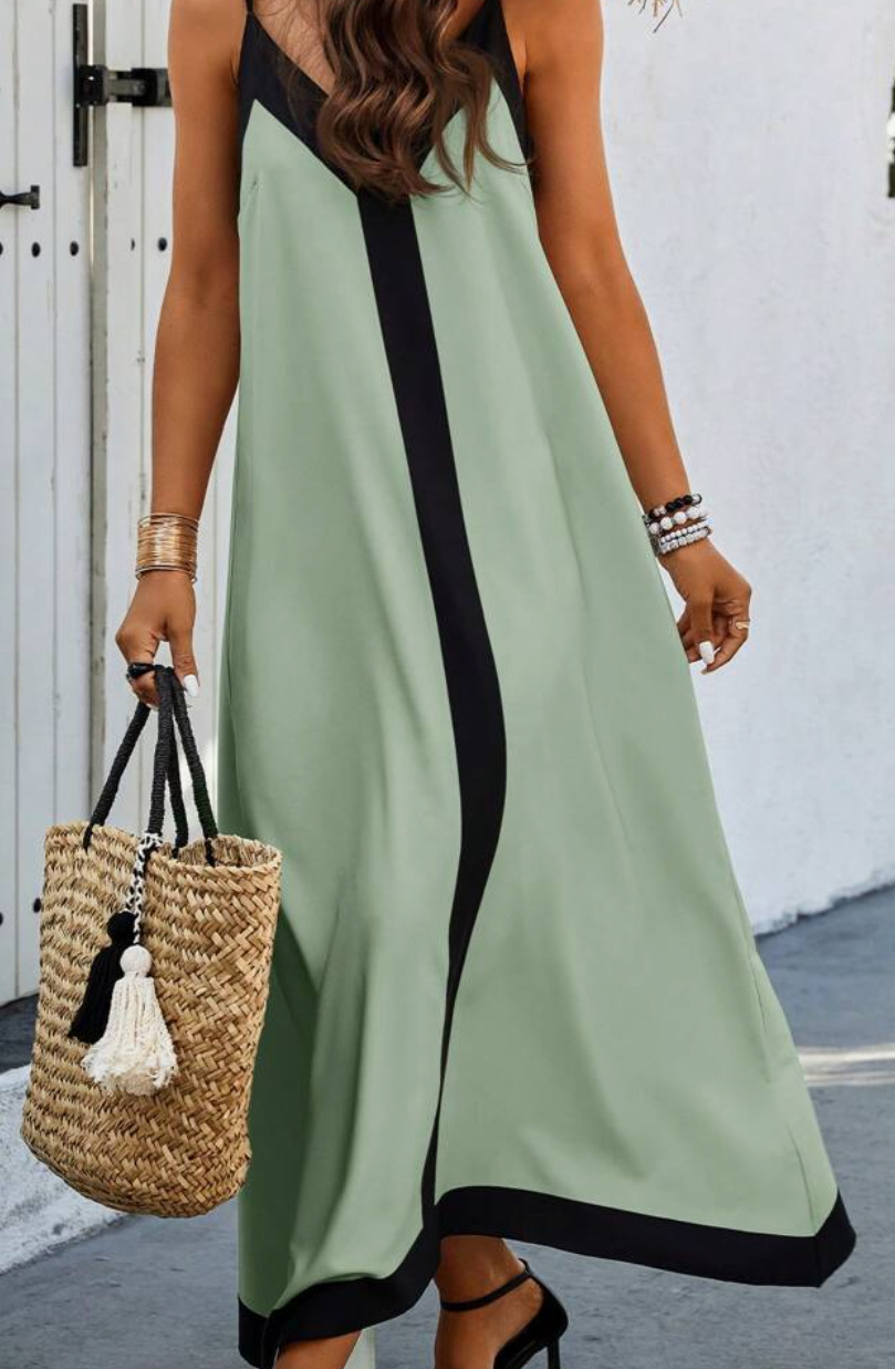 2024 여름 국경 여성 패션 컬러 매칭 조정 가능한 슬링 긴 휴가 스타일 원피스스토어 가기