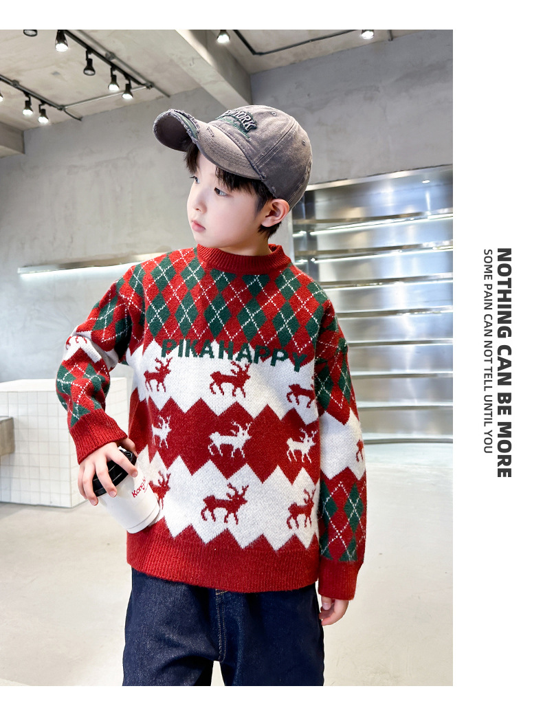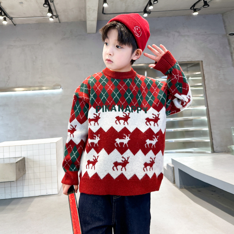 남아용 라운드넥 두꺼운 크리스마스 스웨터 겨울 신상 2025 한국 스타일 아동용 루즈핏 니트웨어