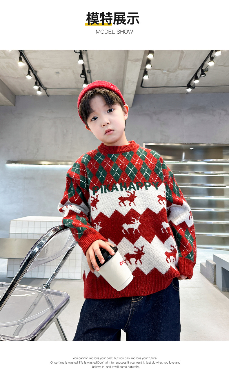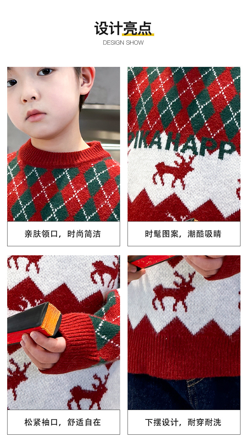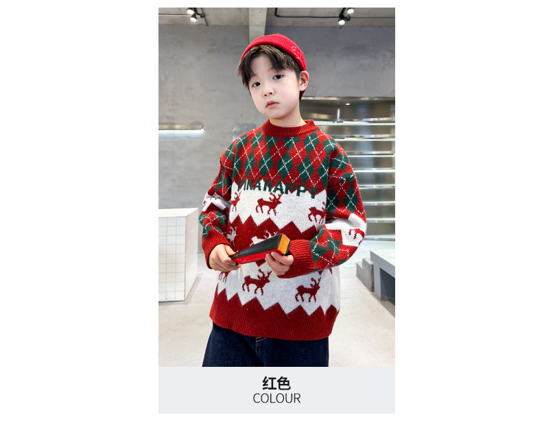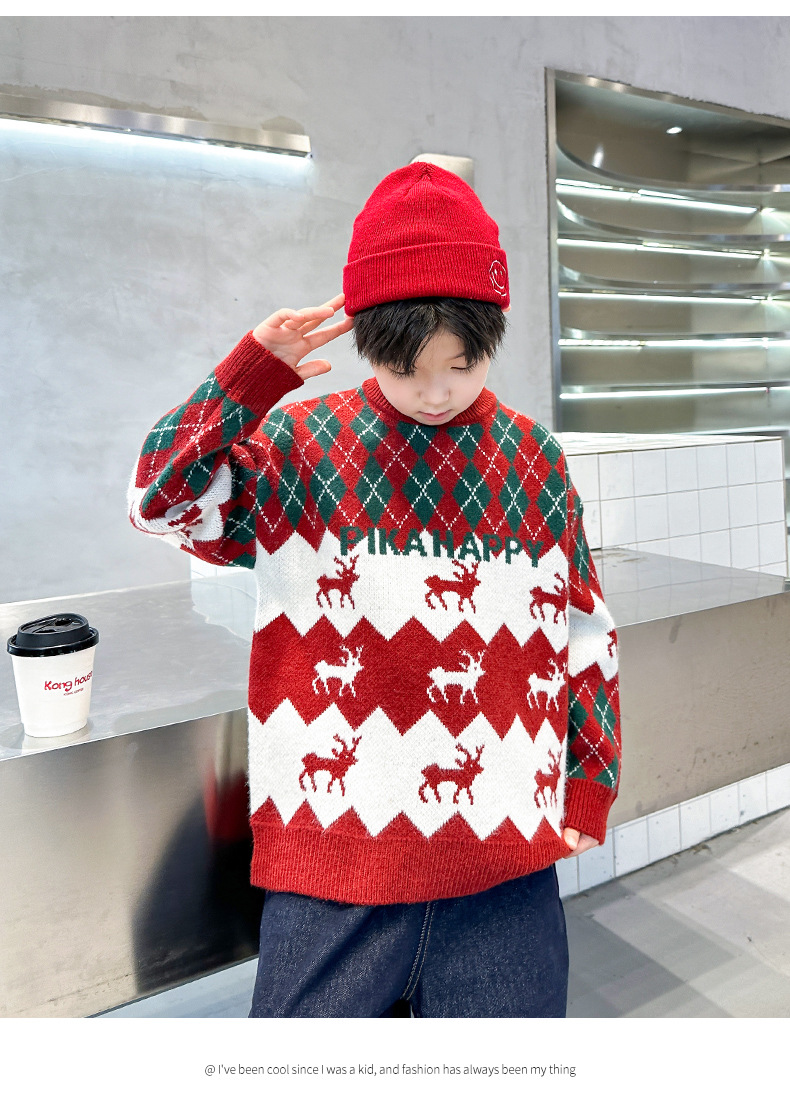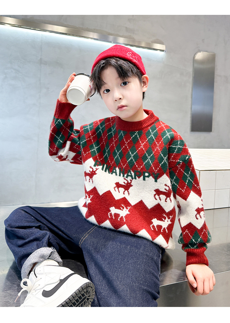 남아용 라운드넥 두꺼운 크리스마스 스웨터 겨울 신상 2025 한국 스타일 아동용 루즈핏 니트웨어스토어 가기
