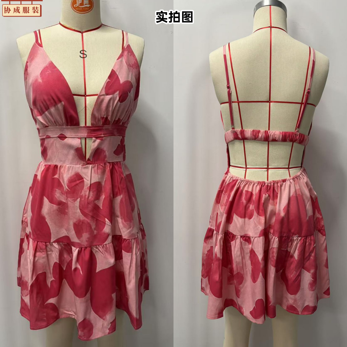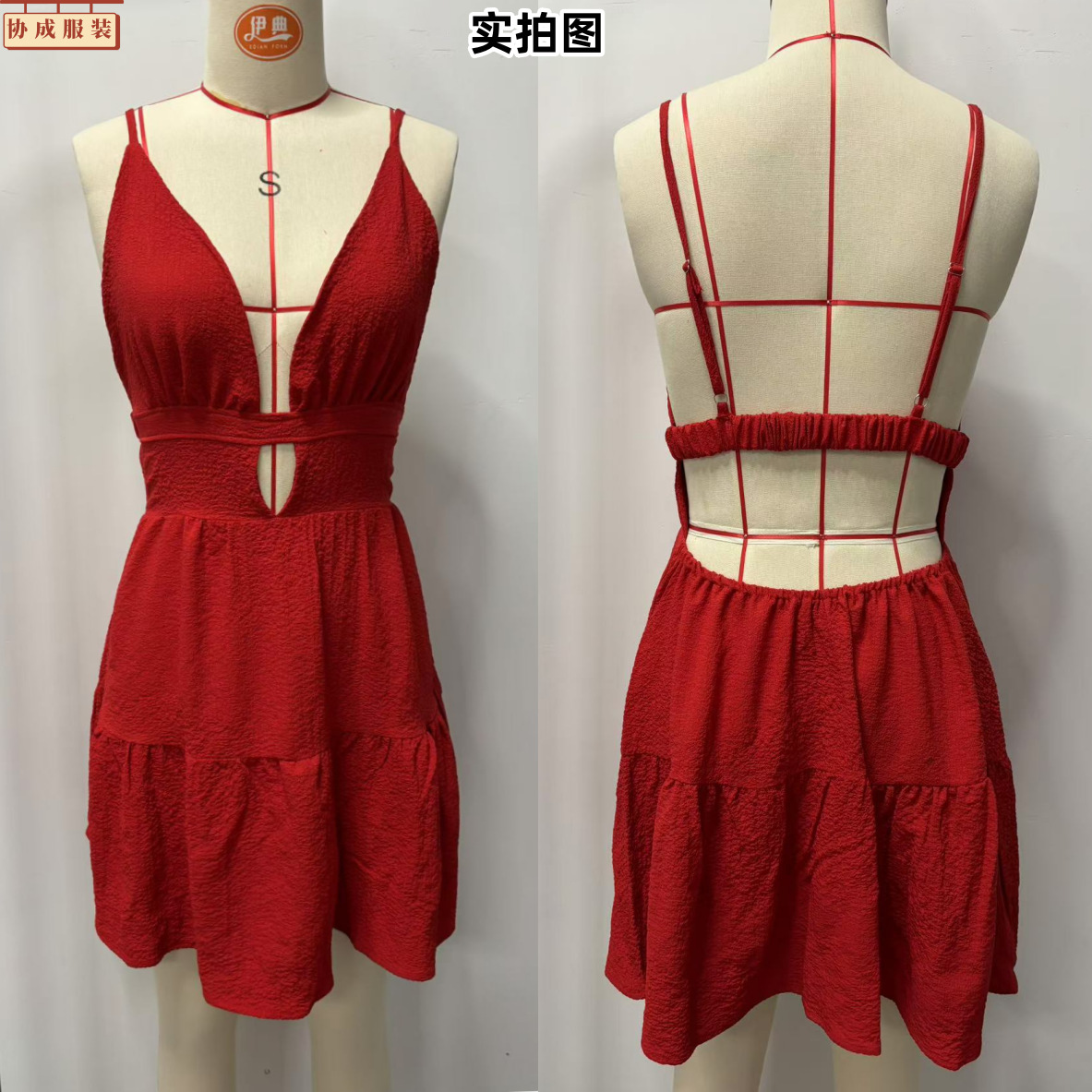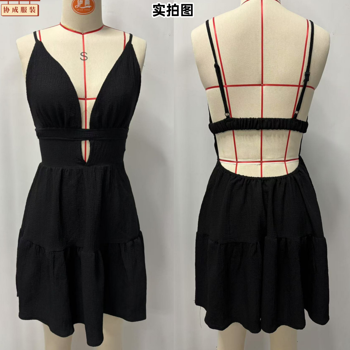 亚马逊跨境欧美女式夏季度假连衣裙 性感辣妹无袖露背吊带连衣裙