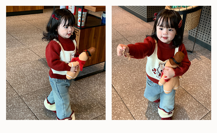 레몬 소녀의 기모 두꺼운 스웨터 가짜 투피스 새로운 스타일 아기 소녀의 스타일리시 한 조각 귀여운 트렌디 스웨터스토어 가기