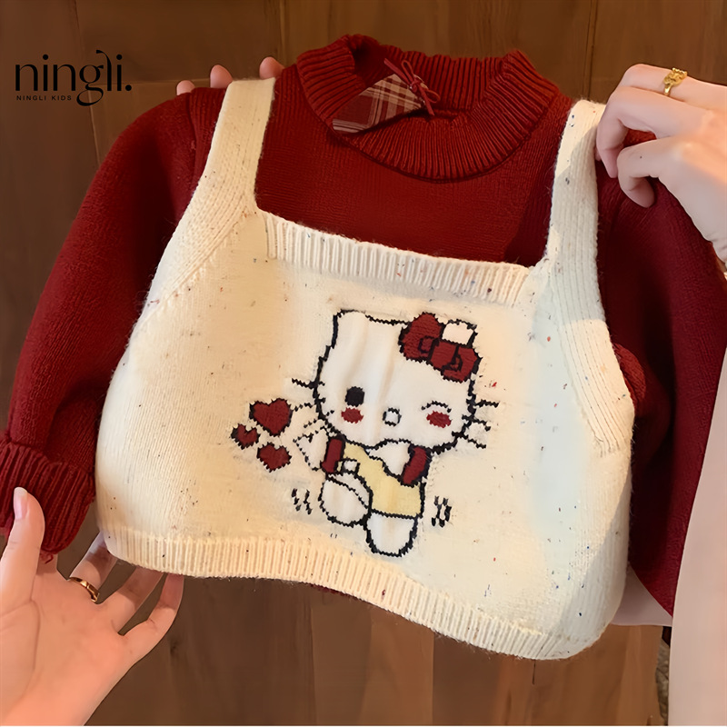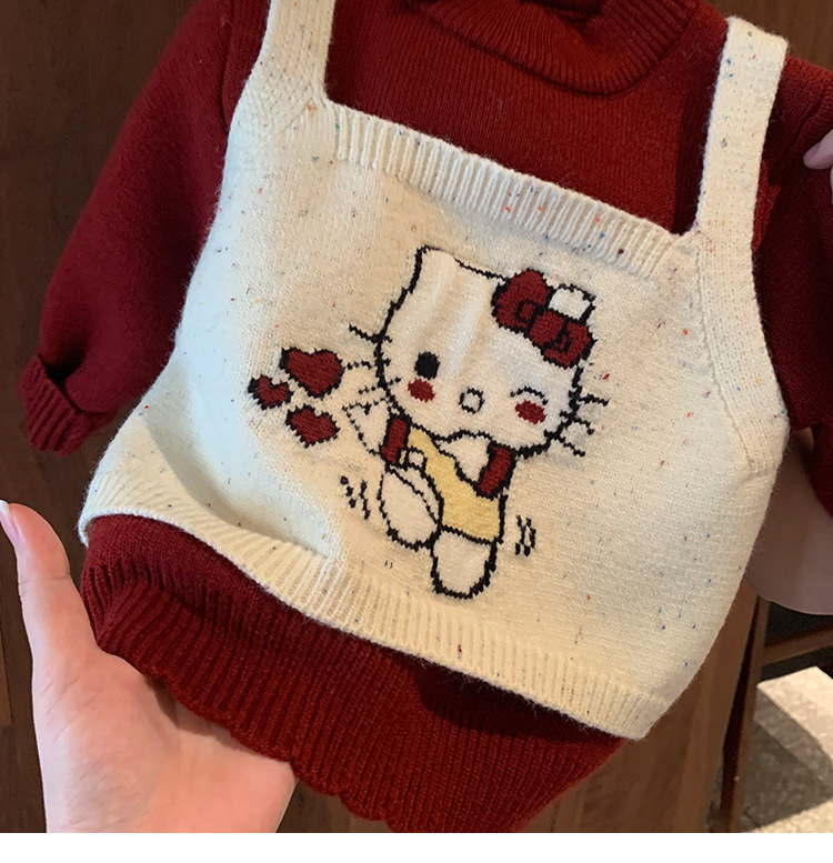 레몬 소녀의 기모 두꺼운 스웨터 가짜 투피스 새로운 스타일 아기 소녀의 스타일리시 한 조각 귀여운 트렌디 스웨터
