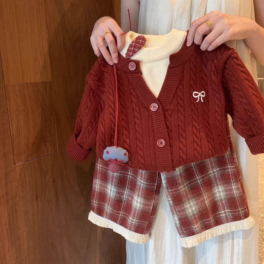 • 6975-버건디 페이크 투피스 스웨터 [두꺼운 스타일]