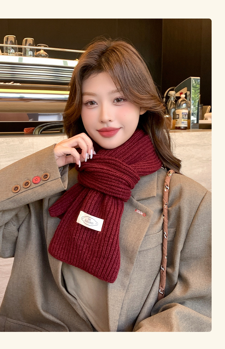• 두꺼운 바늘 작은 라벨 롱 스카프 버건디