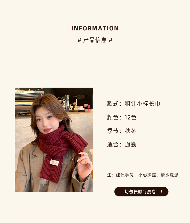 • 두꺼운 바늘 작은 라벨 긴 스카프 카멜