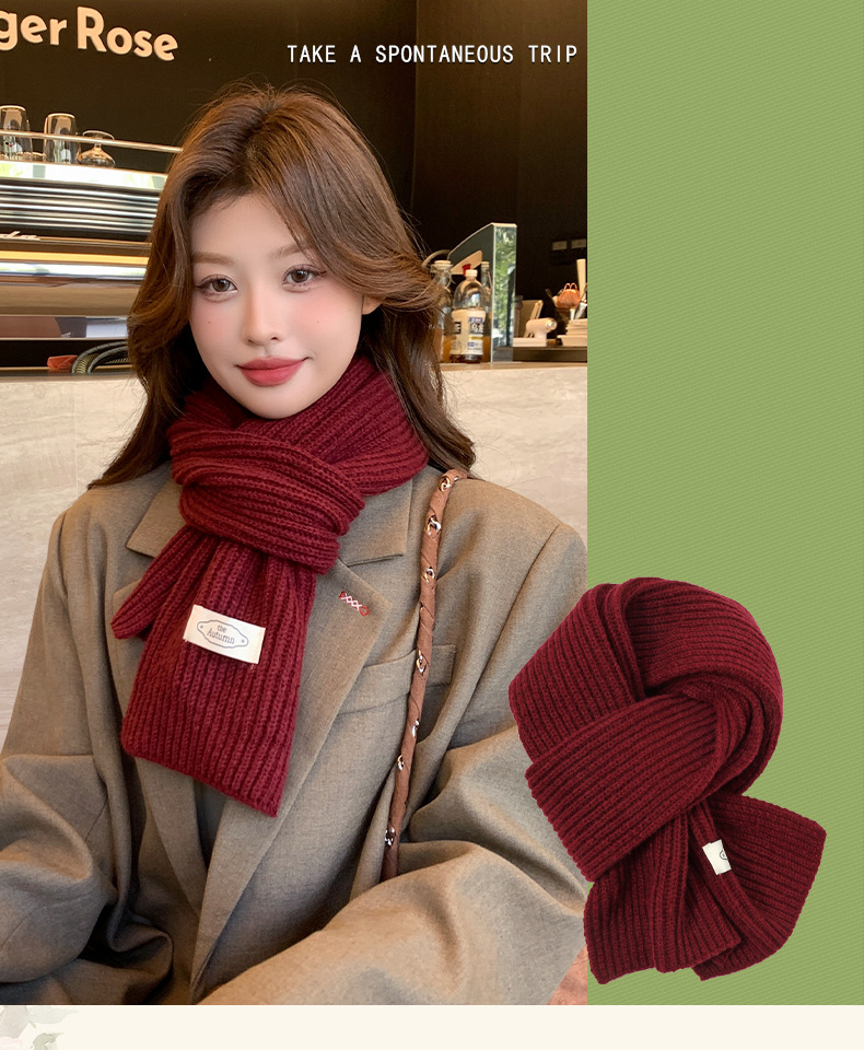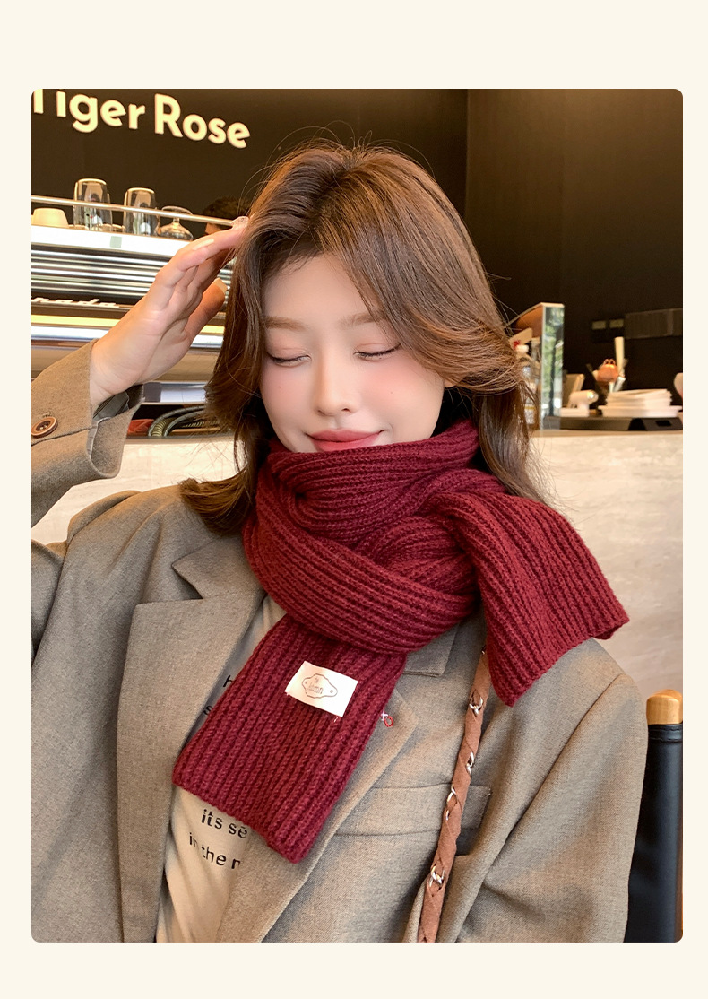 • 두꺼운 바늘 작은 라벨 롱 스카프 레드