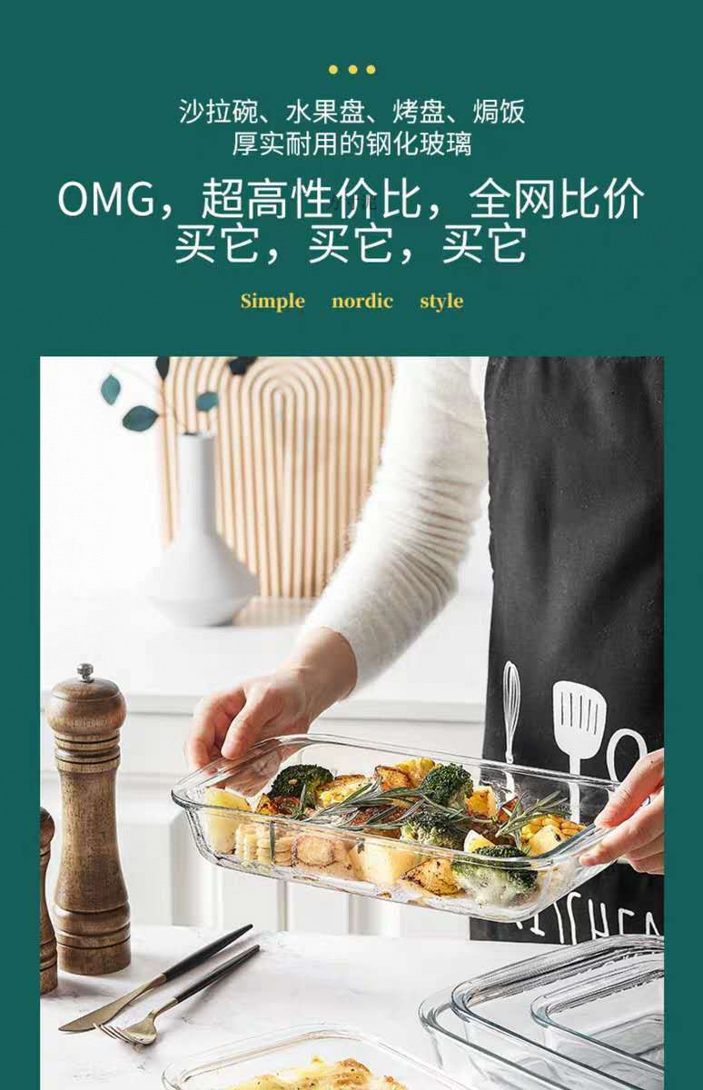 내열성 유리 베이킹 플레이트 내열성 유리 플레이트 직사각형 구운 쌀 플레이트 가정용 전자 레인지 오븐 구운 고기 생선 접시 공장스토어 가기