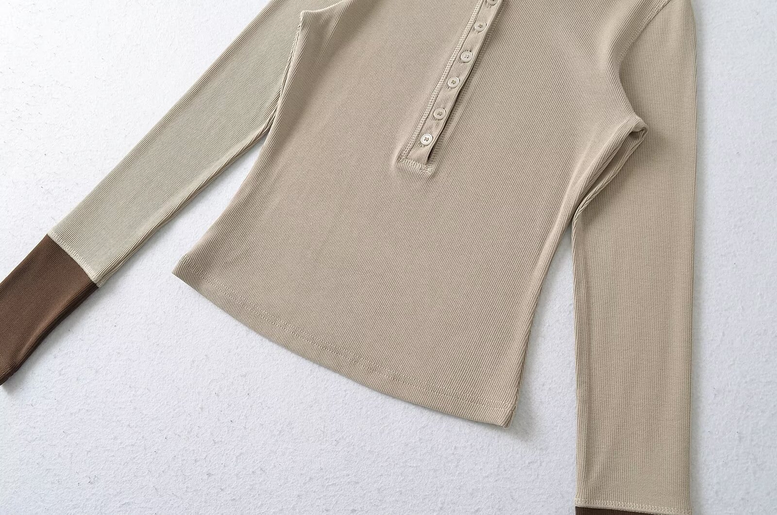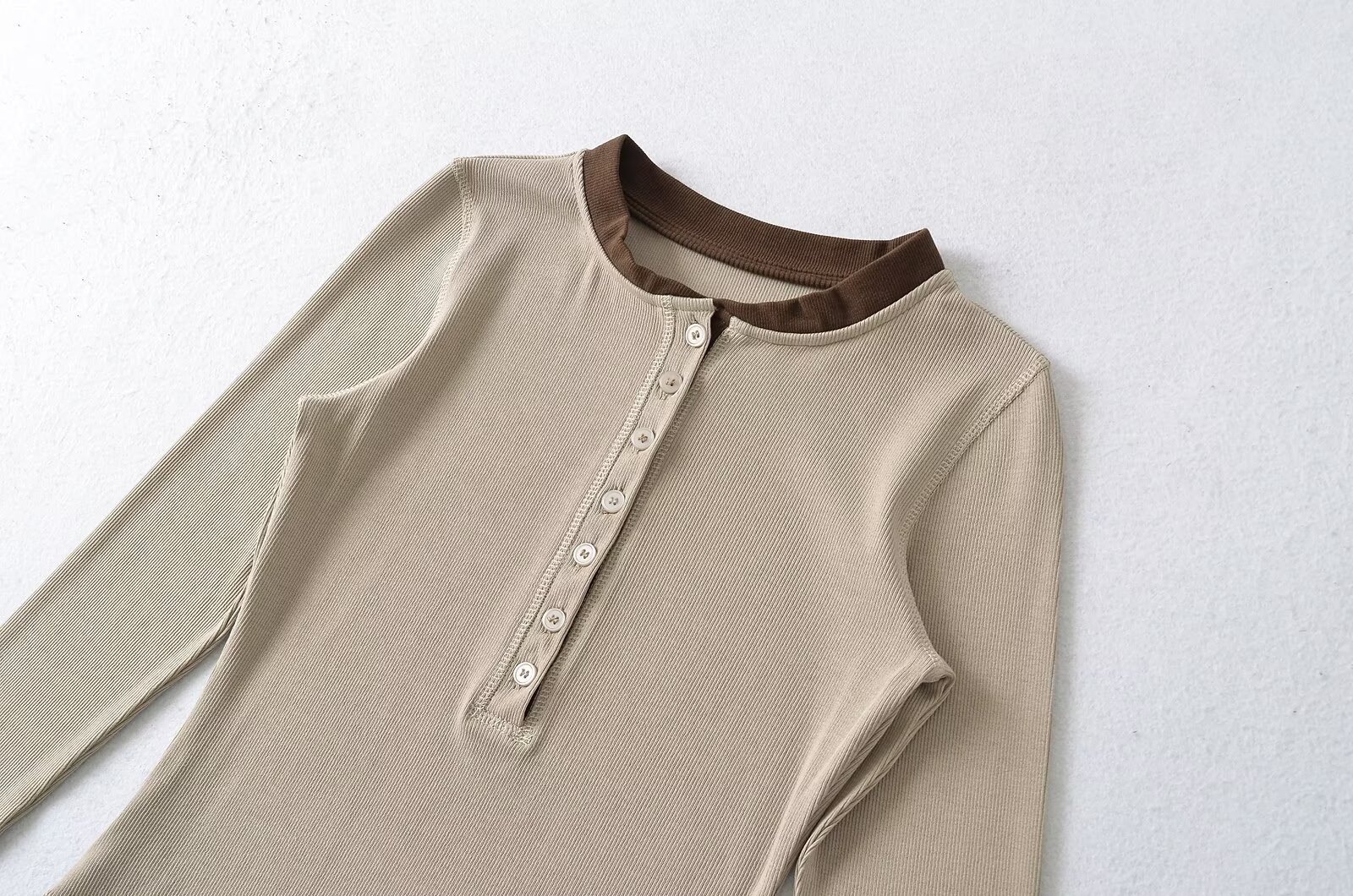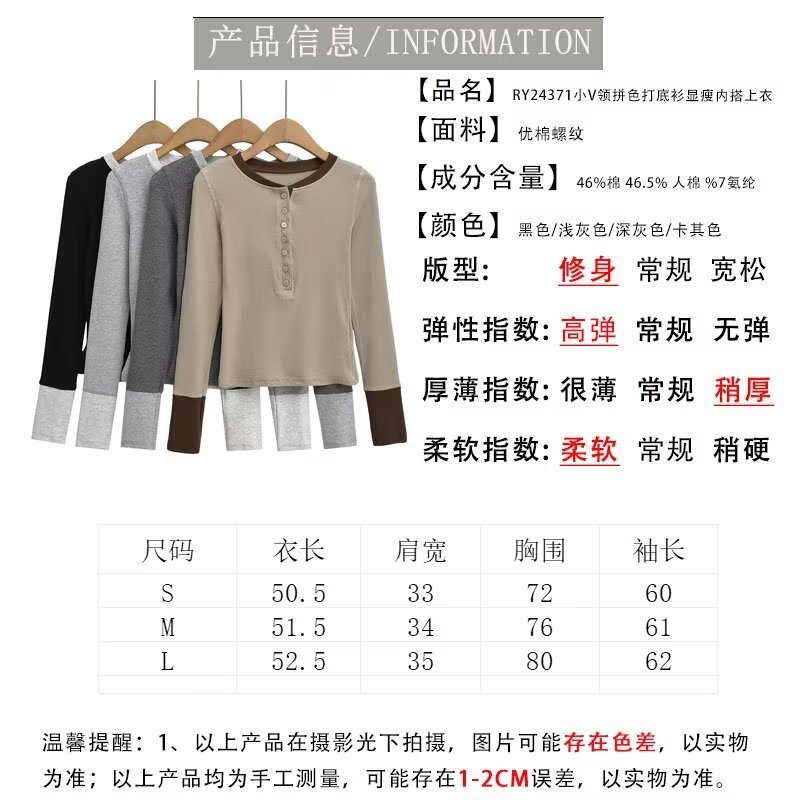 매일러드 착용 대비 컬러 크루 넥 긴팔 티셔츠 여성용 가을 및 겨울 새로운 스트레치 슬림 핏 내부 디자인 센스베이스 셔츠스토어 가기