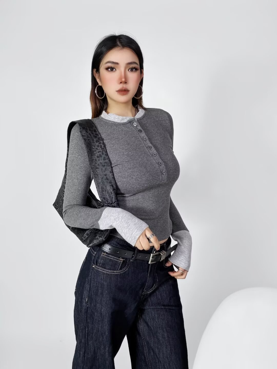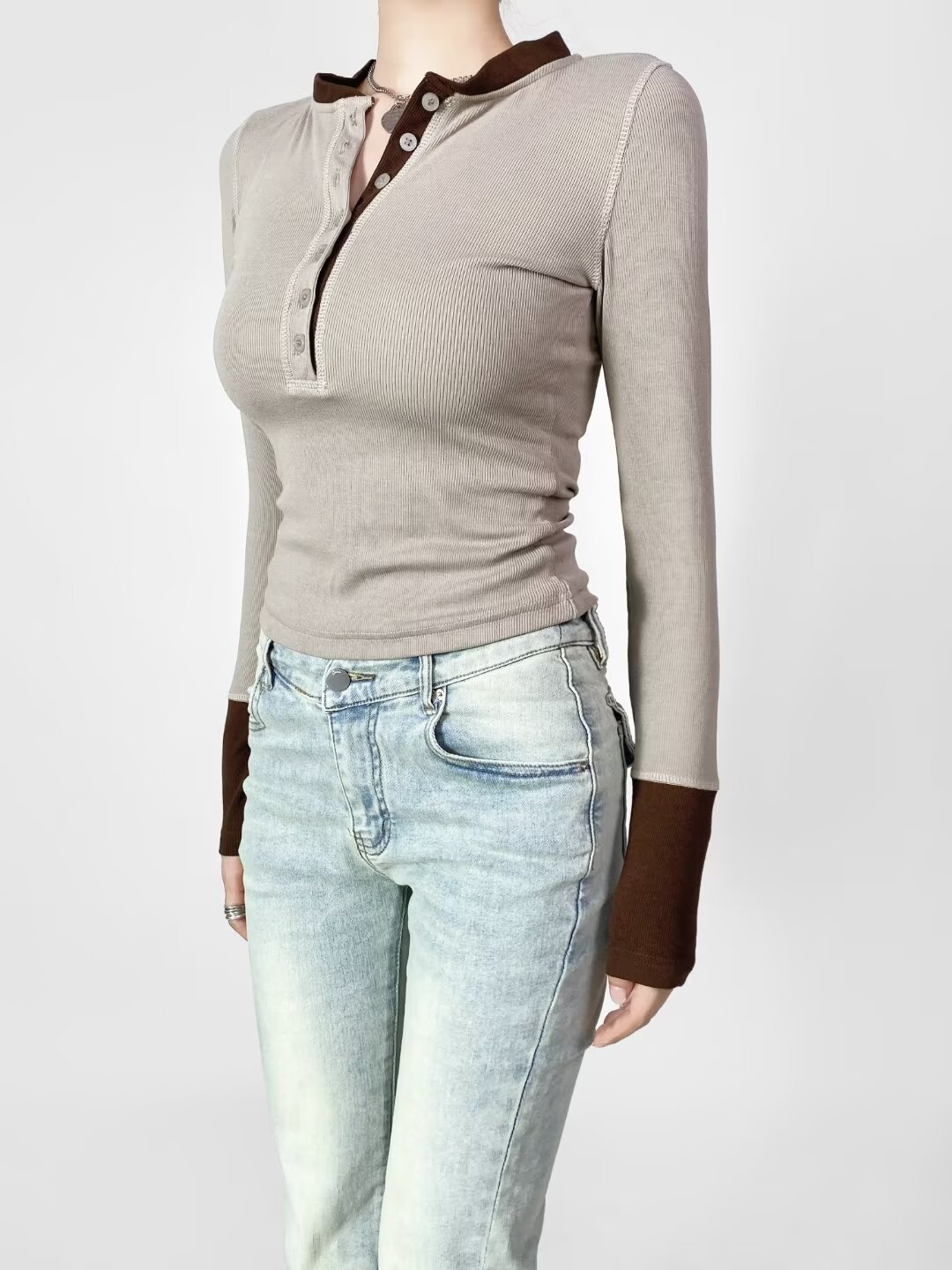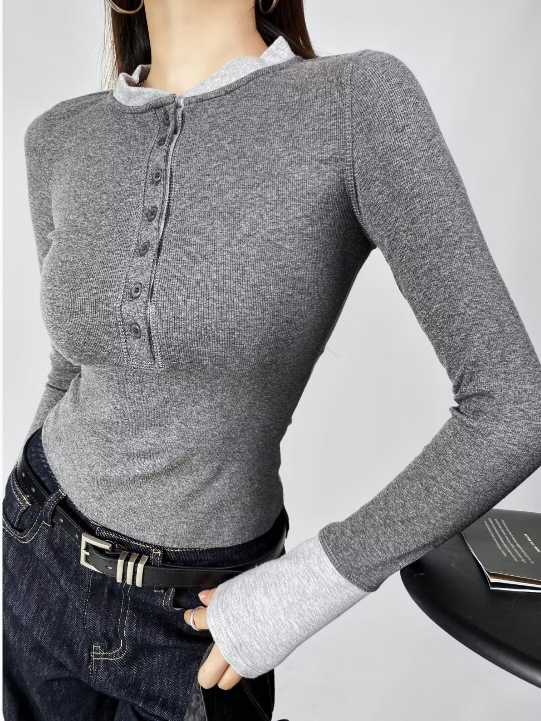 매일러드 착용 대비 컬러 크루 넥 긴팔 티셔츠 여성용 가을 및 겨울 새로운 스트레치 슬림 핏 내부 디자인 센스베이스 셔츠스토어 가기