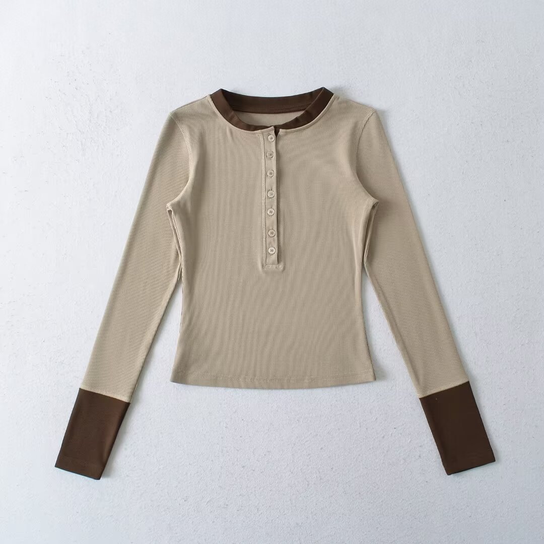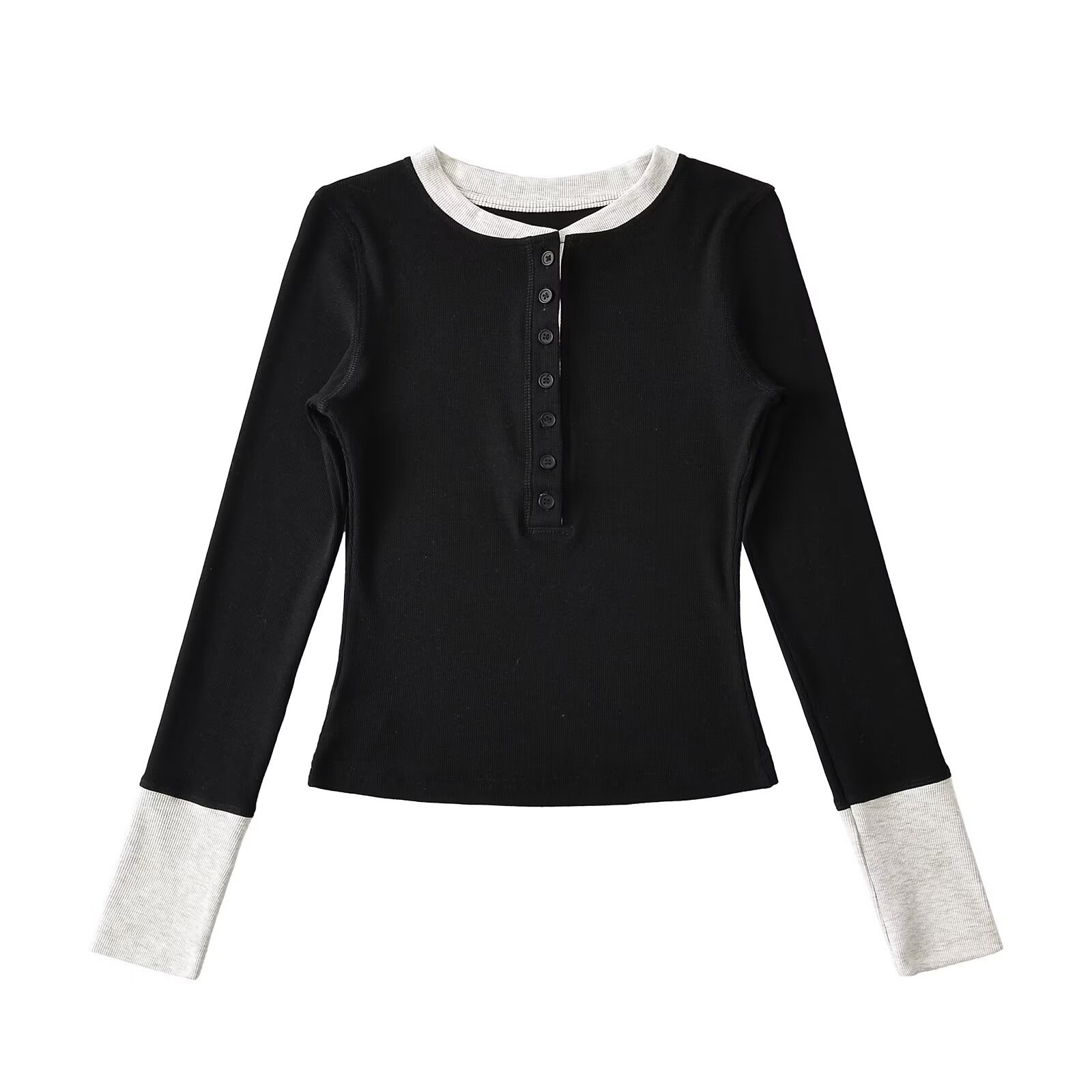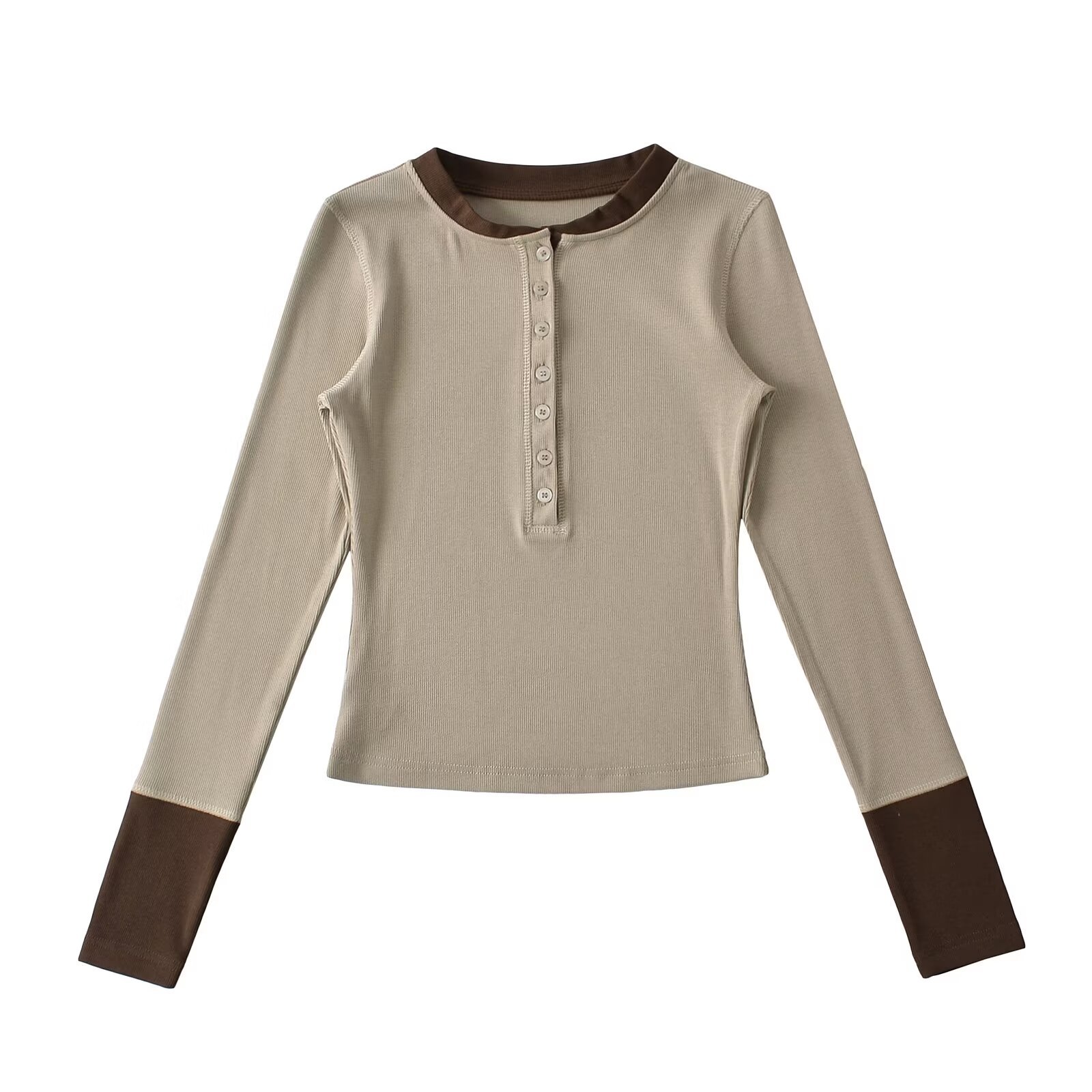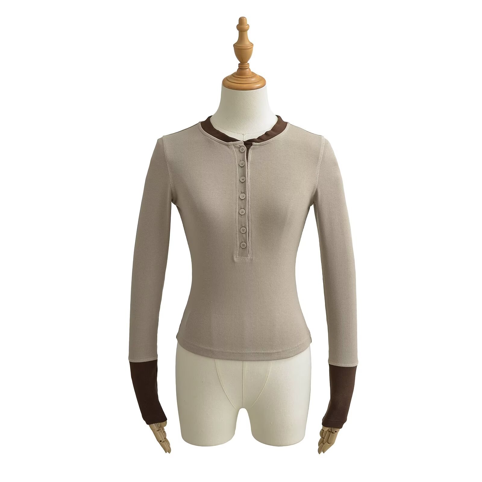 매일러드 착용 대비 컬러 크루 넥 긴팔 티셔츠 여성용 가을 및 겨울 새로운 스트레치 슬림 핏 내부 디자인 센스베이스 셔츠