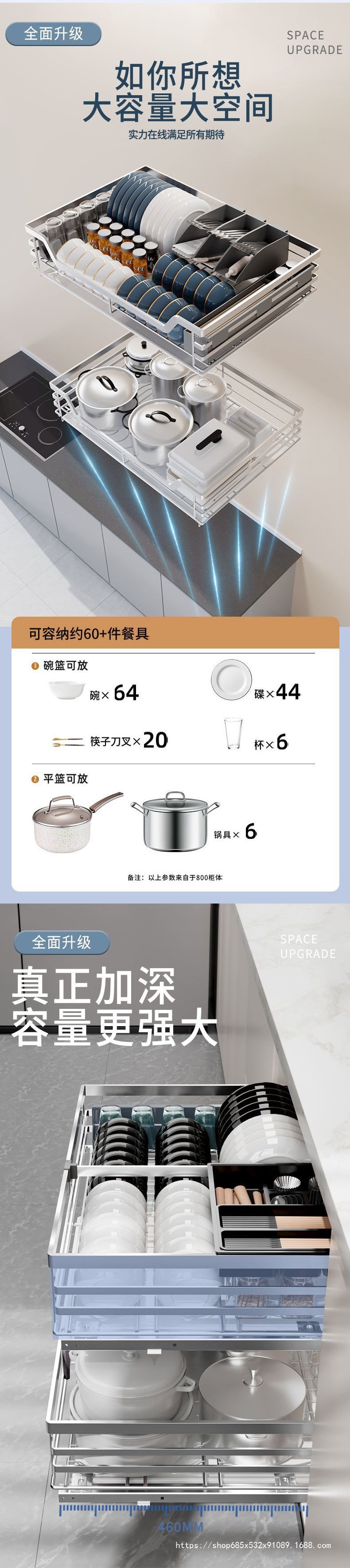 서랍 바구니 주방 캐비닛 저장 서랍 유형 주방 캐비닛 서랍 바구니 접시 랙 더블 레이어 304 스테인레스 스틸 그릇 바구니 굵은 소재스토어 가기