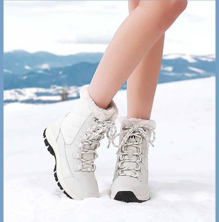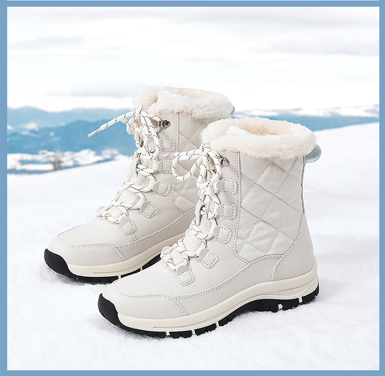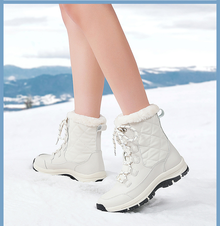 스노우 부츠 여성의 겨울 2024 새로운 미드 튜브 기모 두꺼운 방수 미끄럼 방지 가죽 북동쪽 냉장 큰면 신발스토어 가기