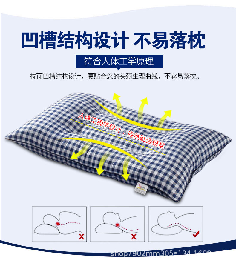 베개 격자 무늬 단일 수면 자궁 경부 척추 보호 성인 가정용 인스턴트 소매 제품 공급망스토어 가기