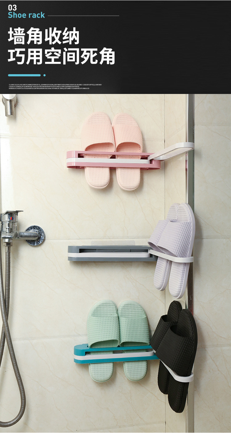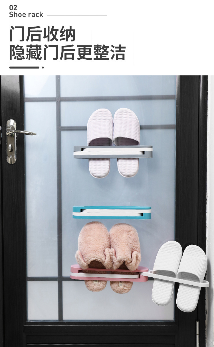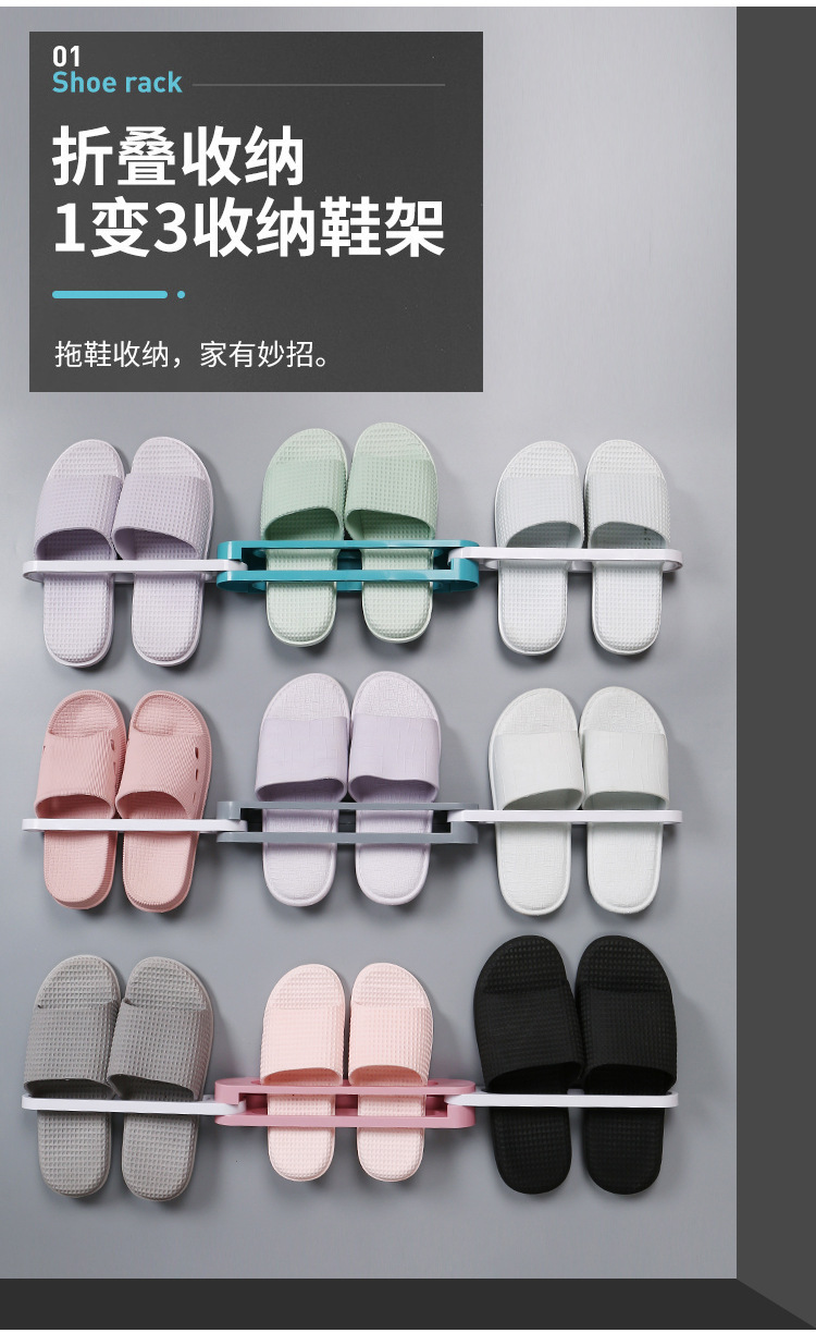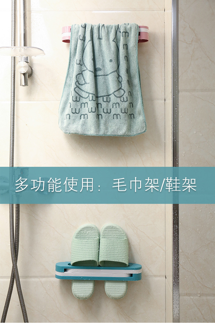 펀치 프리 접이식 3 대 1 다기능 벽걸이 형 슬리퍼 랙 개폐식 욕실 수건 보관 랙스토어 가기