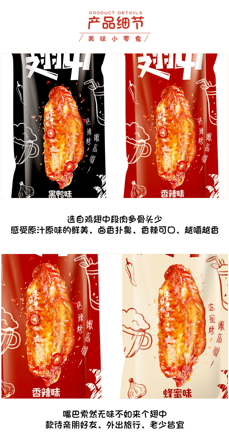 콜라 기본 날개에 매운 검은 오리 꿀 맛 날개 25g 어린 시절 절인 스낵 인스턴트 스낵 도매스토어 가기